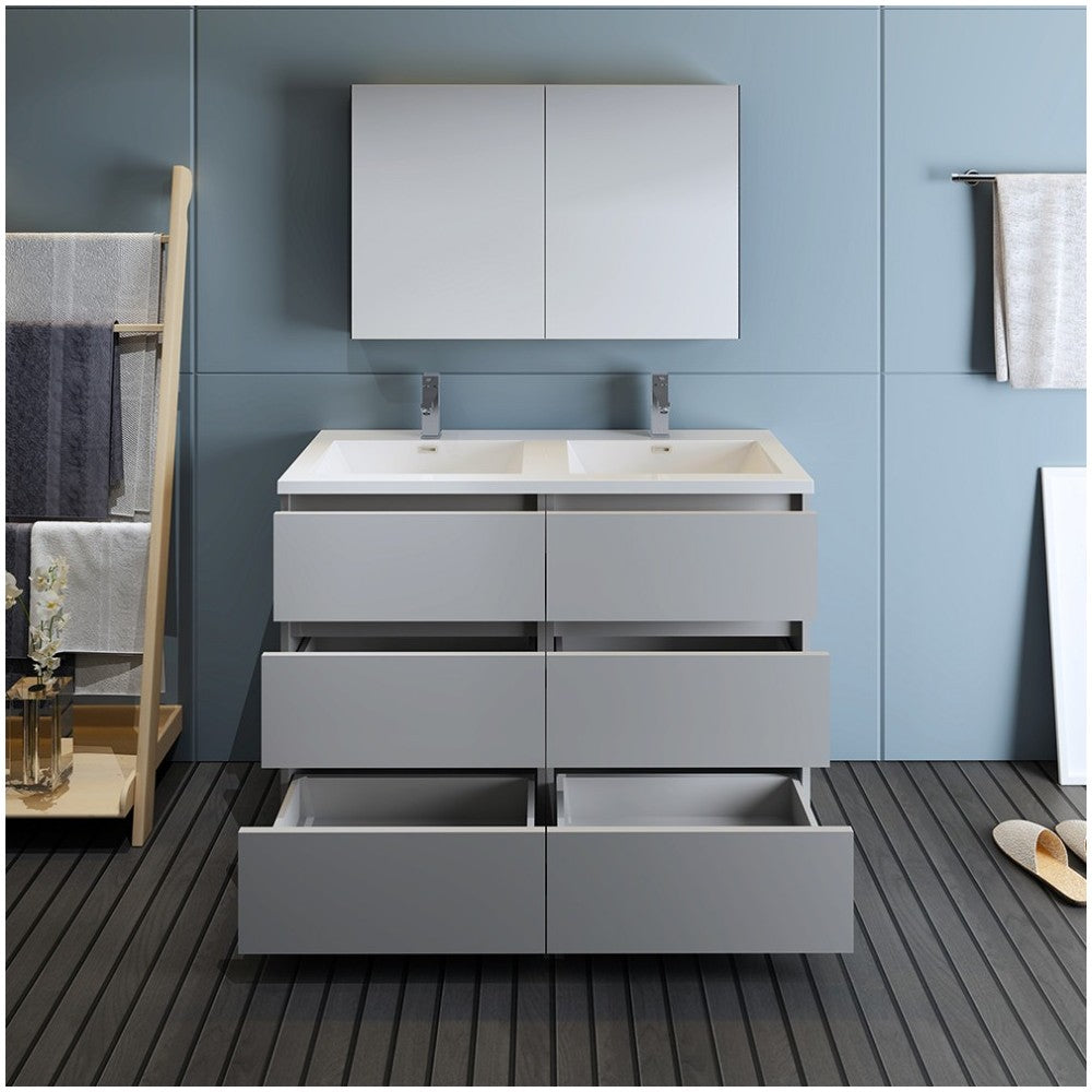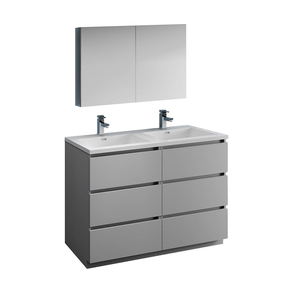 48 Gray Free Standing Double Sink Modern Bathroom Vanity w/ Medicine Cabinet