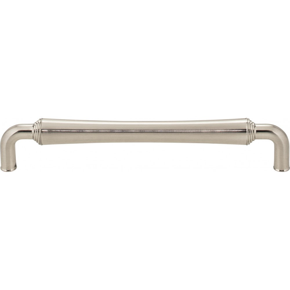 The unfailing style of Jeffrey Alexander's Bremen 2 is highlighted by the pull's slight curve and a sturdy presence. The stacked barrel design of this 6-11/16" overall length Satin Nickel cabinet pull is echoed in two additional standard pull lengths, an appliance handle as well as in two coordinating knobs. Offered in six endearing finishes, this Jeffrey Alexander collection feels at home in traditional and American Country design. Each item is individually wrapped to protect the item from damage. Attachment hardware is included.