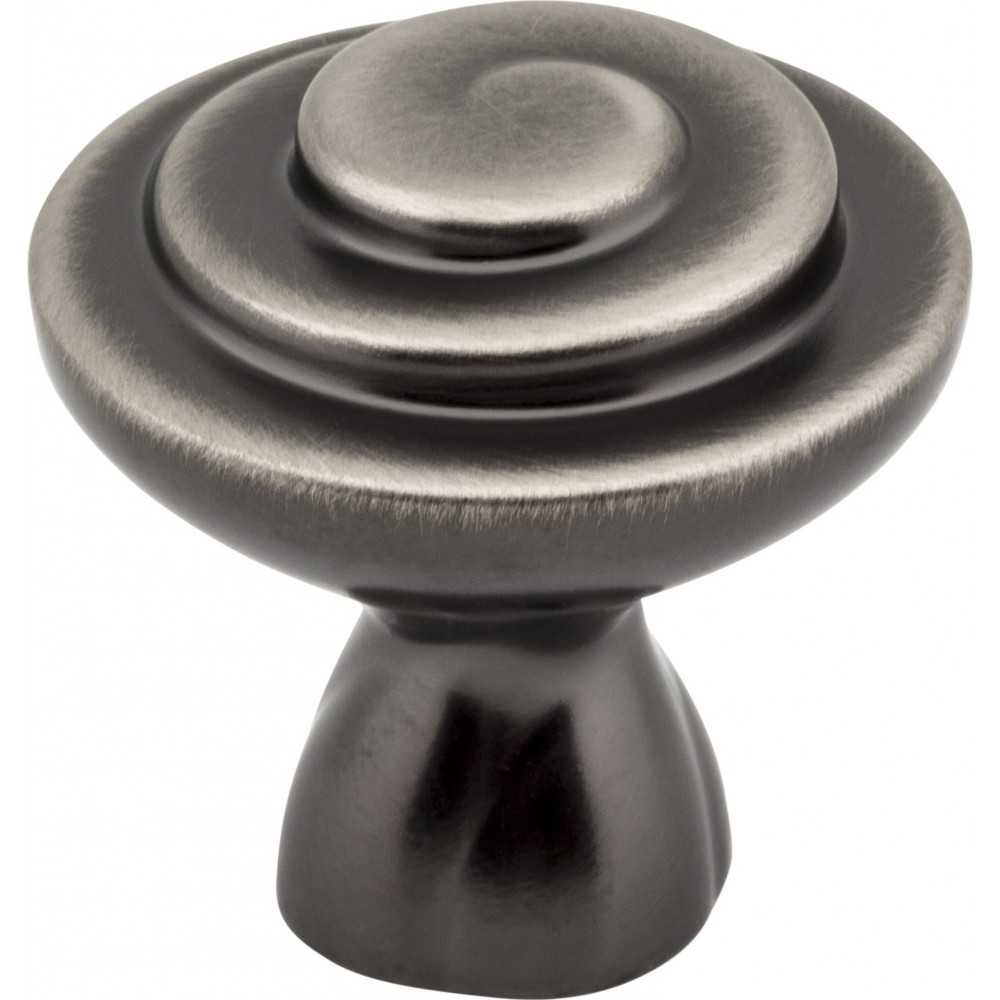 - 1-1/4" Diameter Scroll Cabinet Knob. Packaged with one 8-32 x 1" and 1-3/4" Break-away screw. Finish: Brushed Pewter