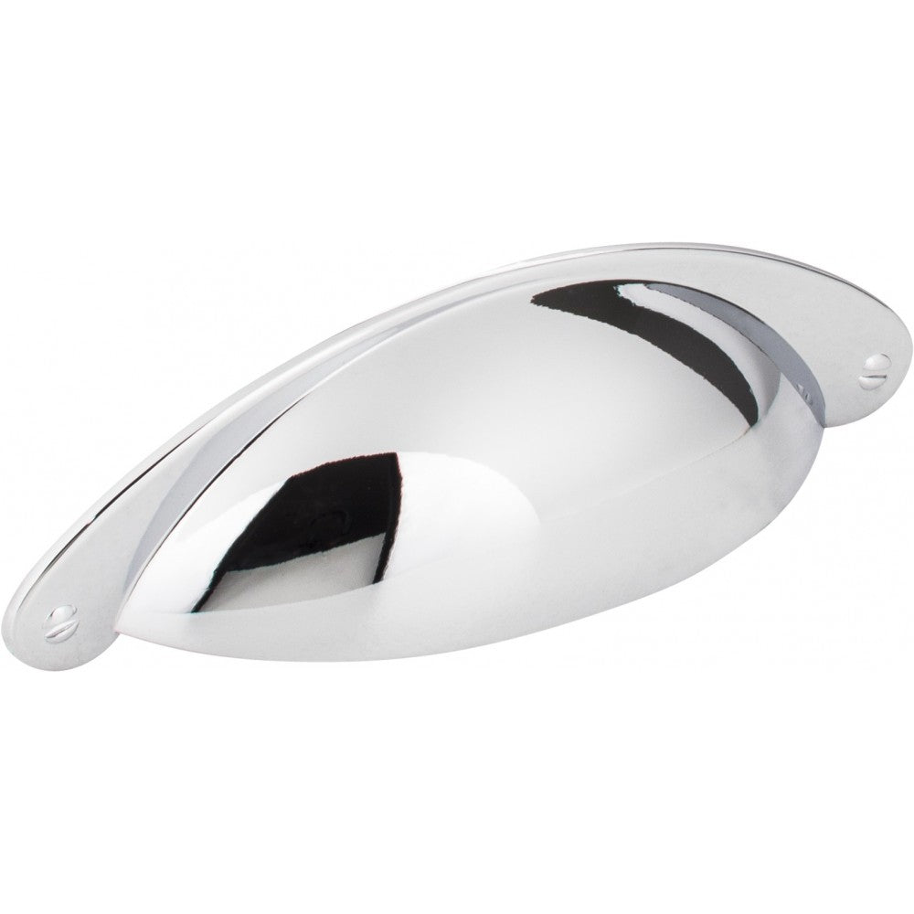 - 4-15/16" Overall Length Shaker Cabinet Cup Pull. Holes are 3" center-to-center. Packaged with two 8-32 x 1" and two Break-away screws. Finish: Polished Chrome