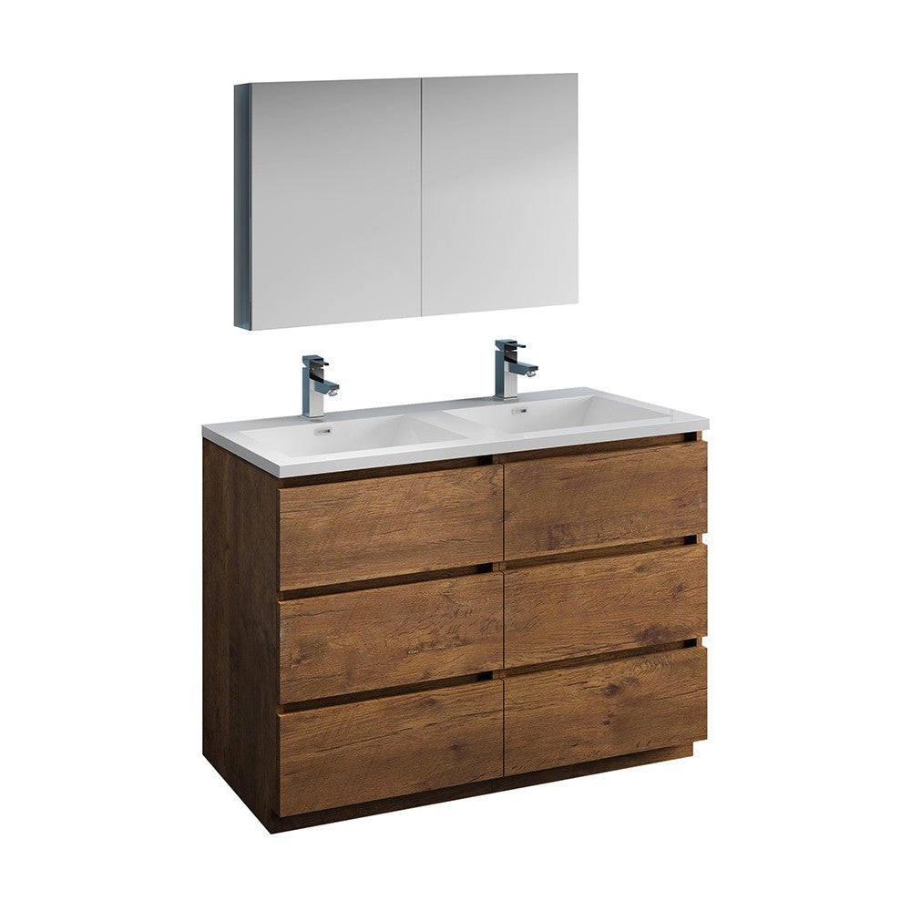 48 Rosewood Free Standing Double Sink Modern Bathroom Vanity w/ Medicine Cabinet