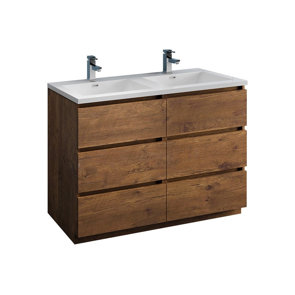 48 Rosewood Free Standing Modern Bathroom Cabinet w/ Integrated Double Sink