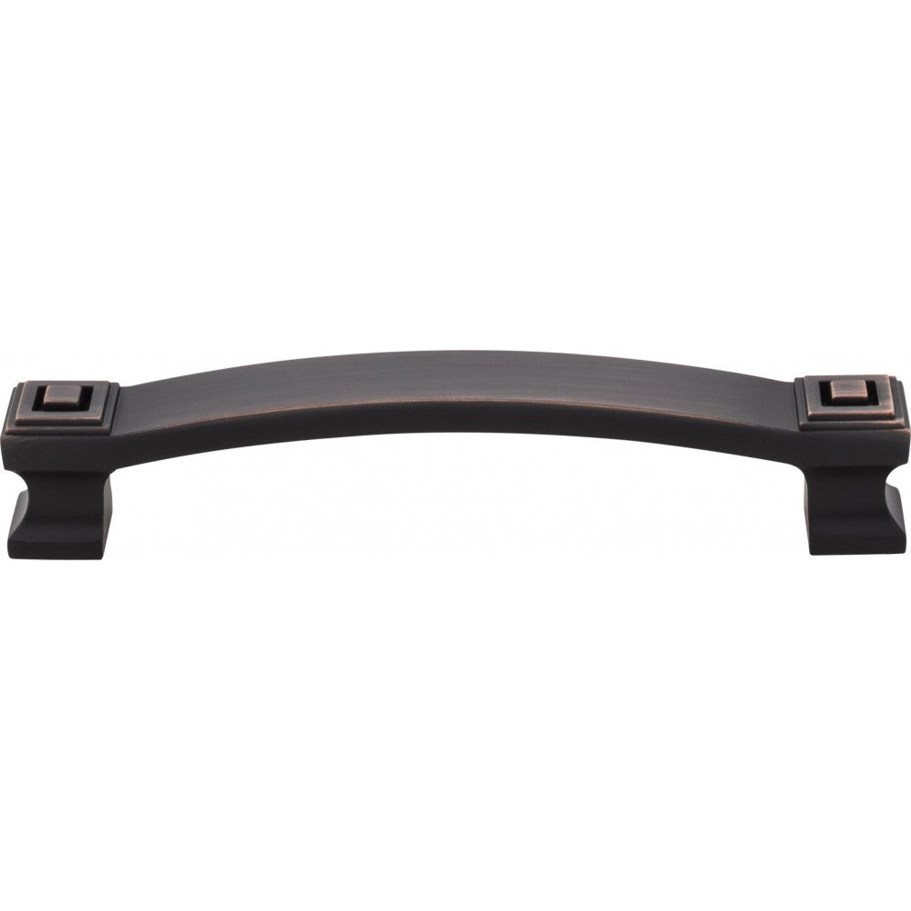 - 5-13/16" Overall Length Square Cabinet Pull. Holes are 128 mm center-to-center. Packaged with two 8-32 x 1" and two Break-away screws. Finish: Brushed Oil Rubbed Bronze