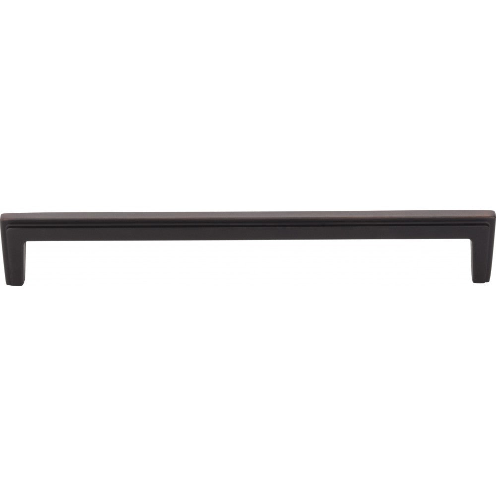 With straight lines and a stepped detail, Lexa's demeanor adds depth and definition to any style cabinet, but especially to slab doors. This linear style 8" overall length Brushed Oil Rubbed Bronze pull is also offered in three additional standard pull lengths. A coordinating cabinet "T" knob rounds out this Jeffrey Alexander collection. Offered in five exciting finishes. This style can lend a modern touch to craftsmen style cabinets. Each item is individually wrapped to protect the item from damage. Attachment hardware is included.