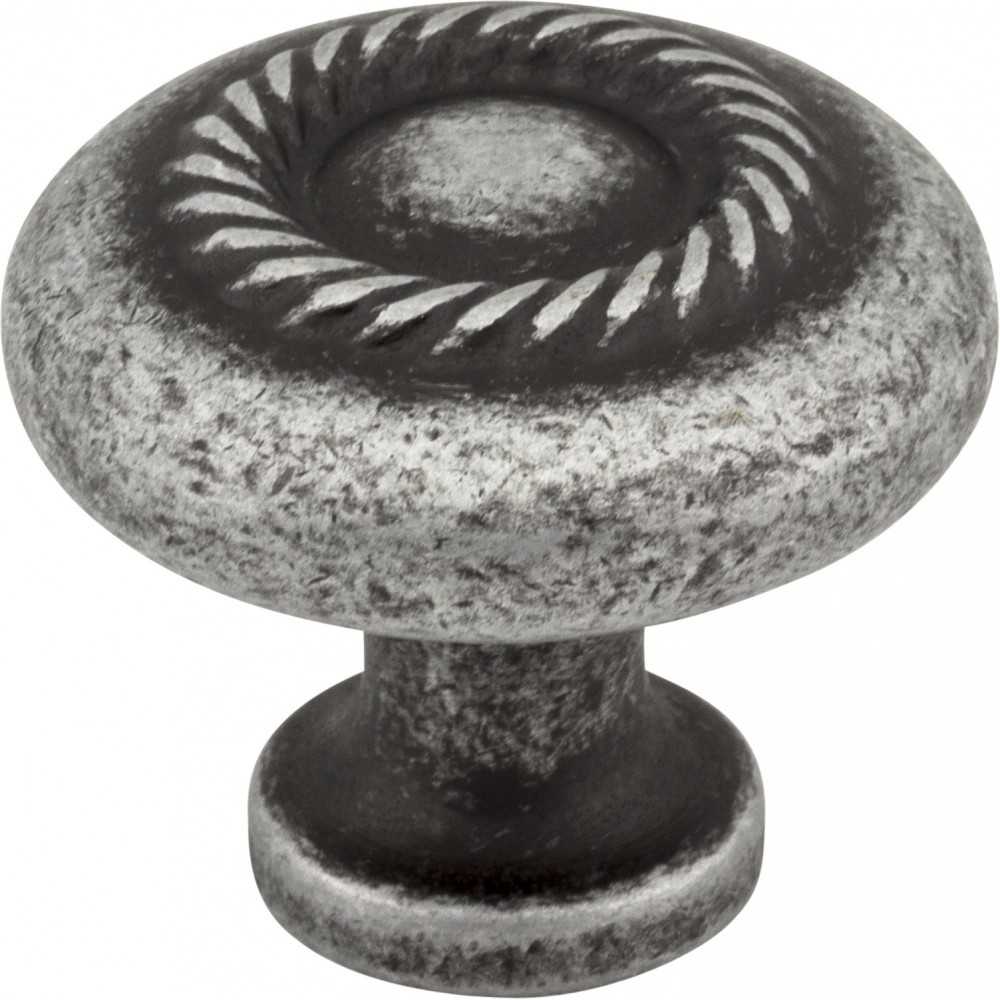 - 1-1/4" Diameter Cabinet Knob with Rope Detail. Packaged with one 8-32 x 1" and 1-3/4" Break-away screw. Finish: Distressed Antique Silver