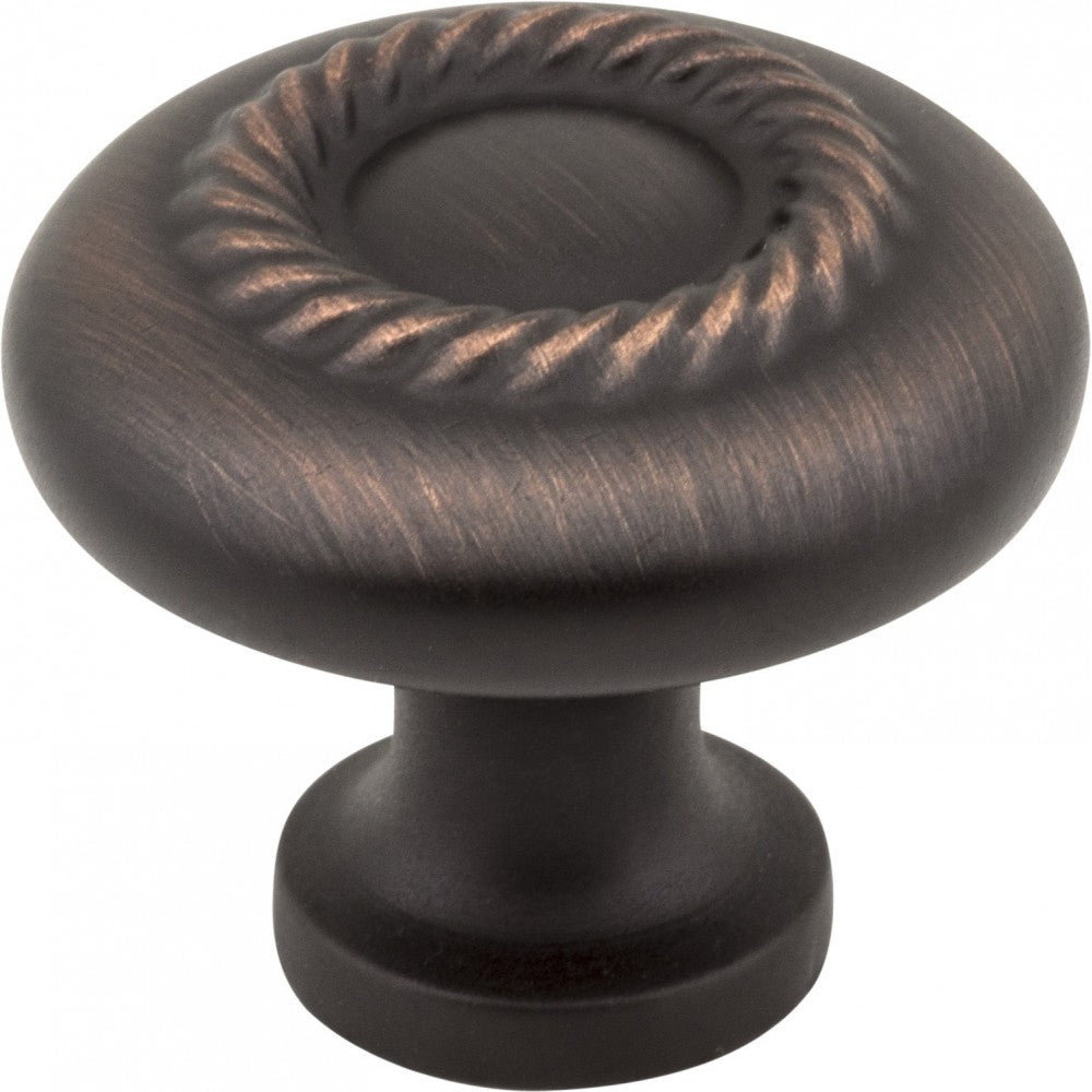 - 1-1/4" Diameter Cabinet Knob with Rope Detail. Packaged with one 8-32 x 1" and 1-3/4" Break-away screw. Finish: Brushed Oil Rubbed Bronze