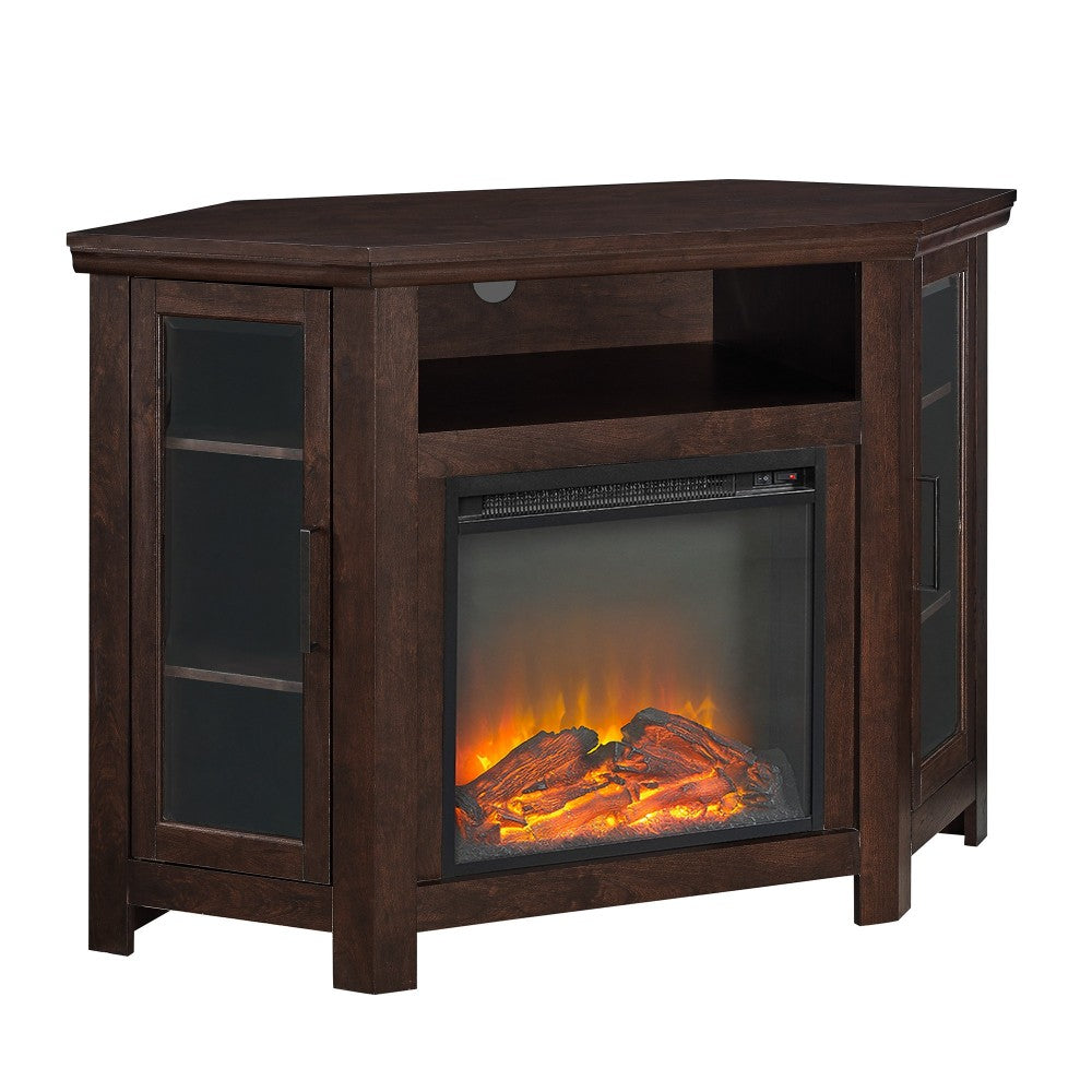 48" Wood Corner Fireplace TV Stand - Traditional Brown