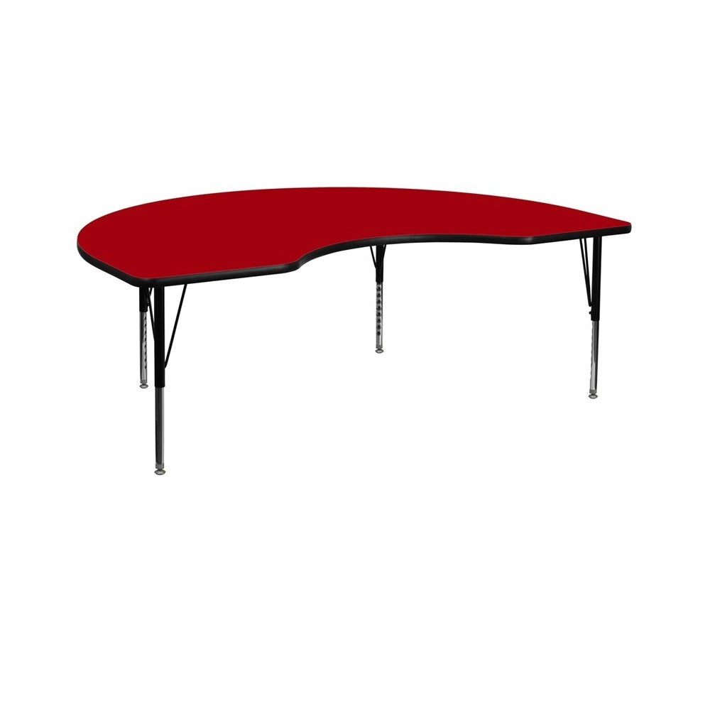 48''W x 96''L Kidney Red Thermal Laminate Activity Table - Height Adjustable Short Legs