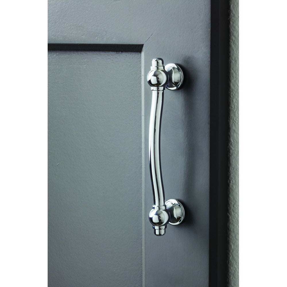 - 4-7/8" Overall Length Modern Cabinet Pull. Holes are 96 mm center-to-center. Packaged with two 8-32 x 1" and two Break-away screws. Finish: Satin Nickel