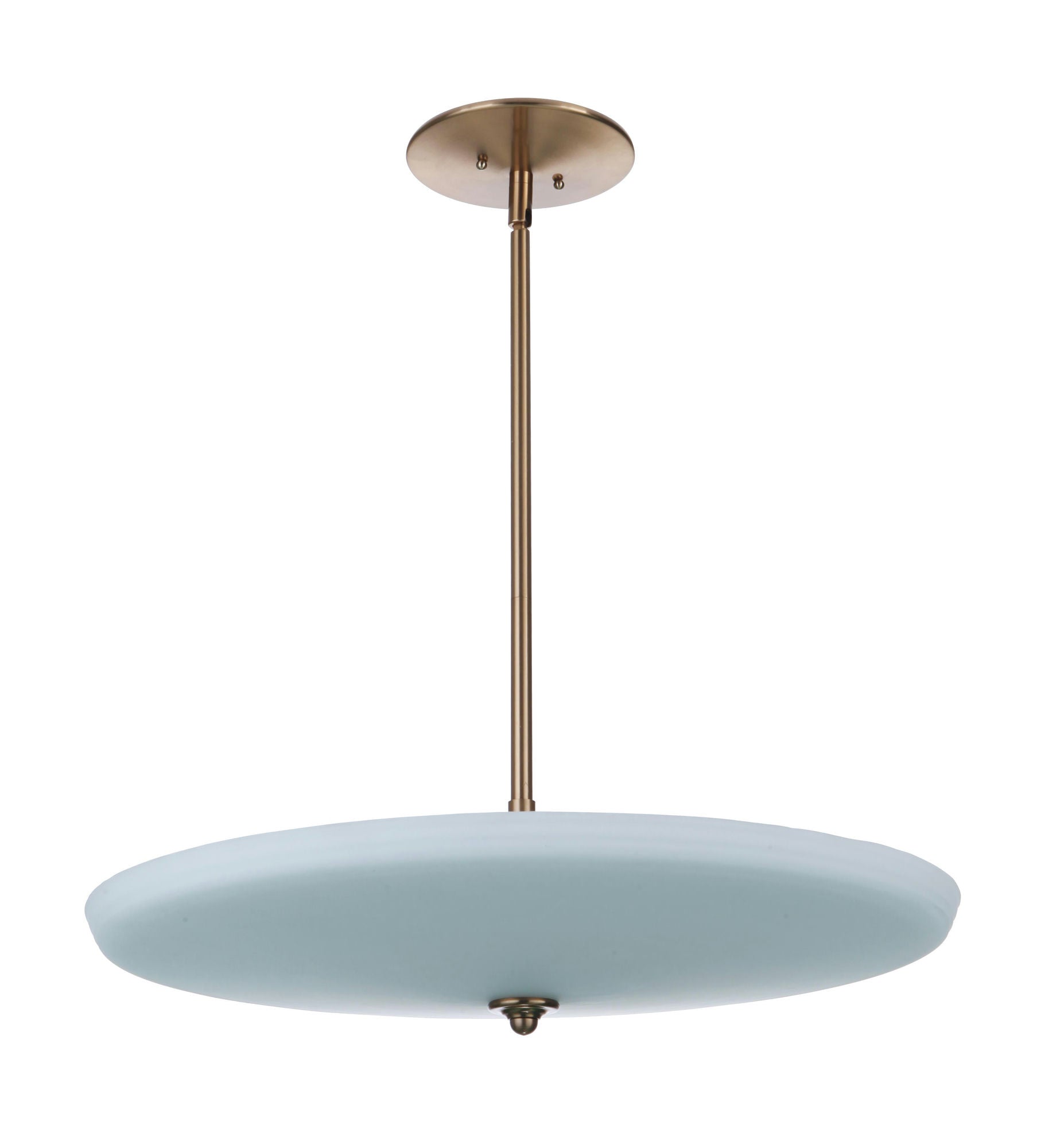 Satin Brass and crisp white glass combine to become a streamlined, gleaming pendant that projects the strength and brilliance of the Stenson pendants.