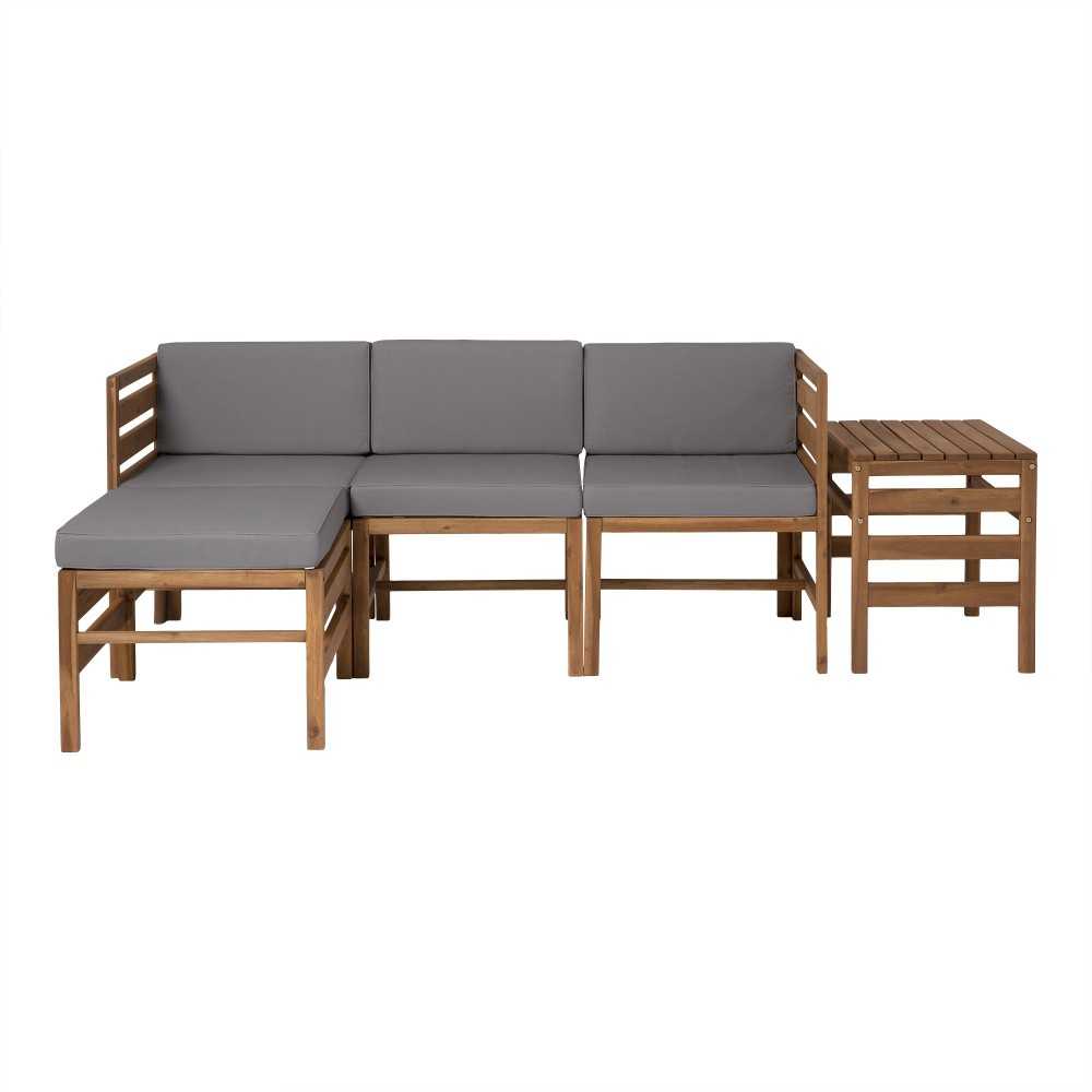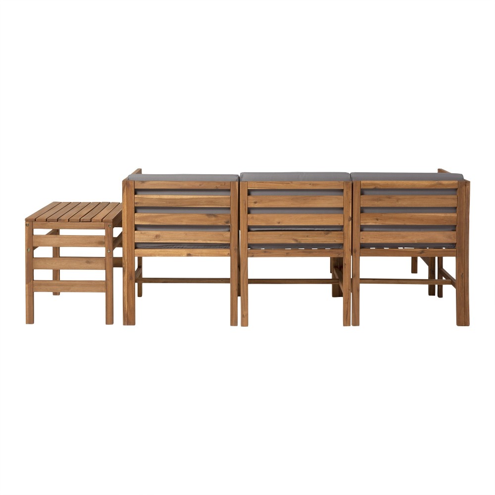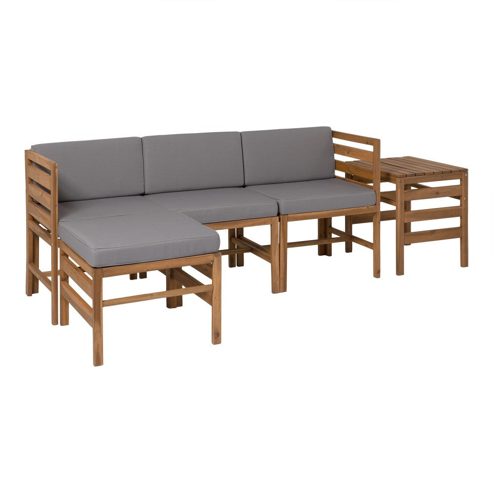 5-Piece Modular Acacia - 3 seat and Ottoman + Side Table - Brown