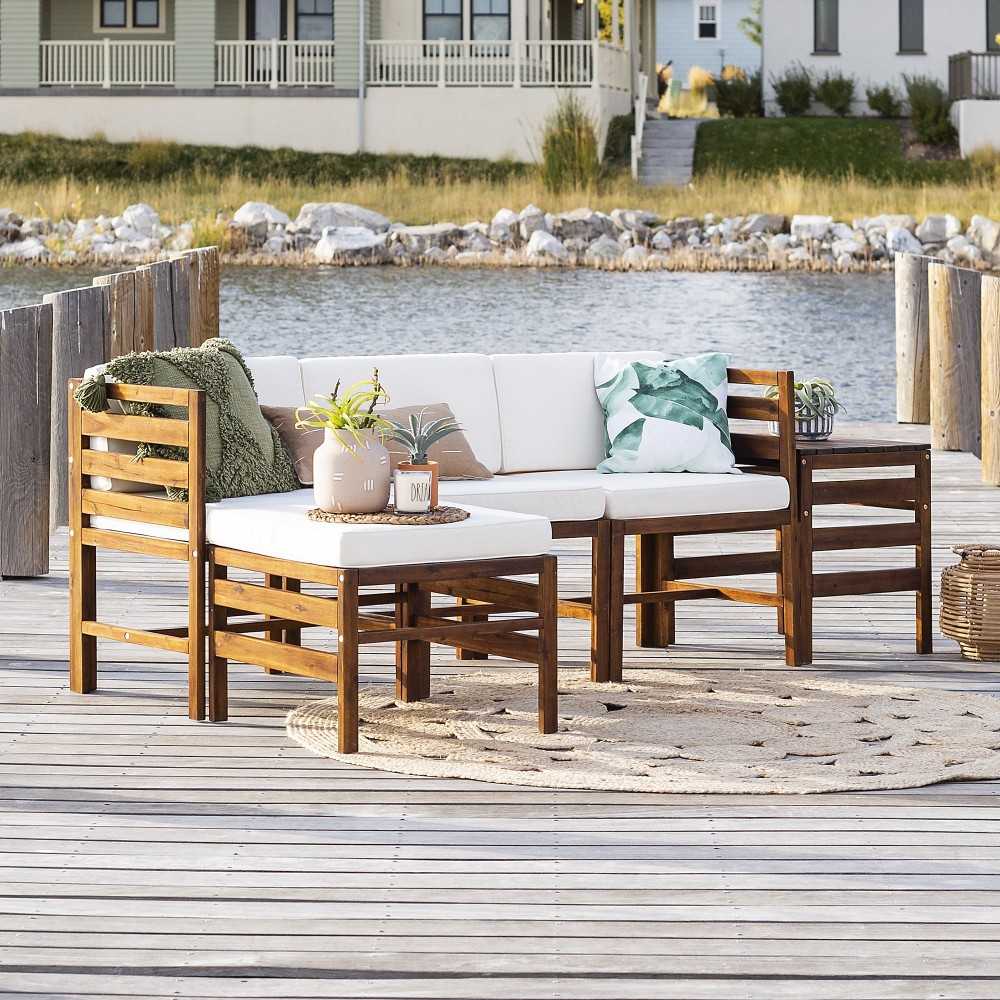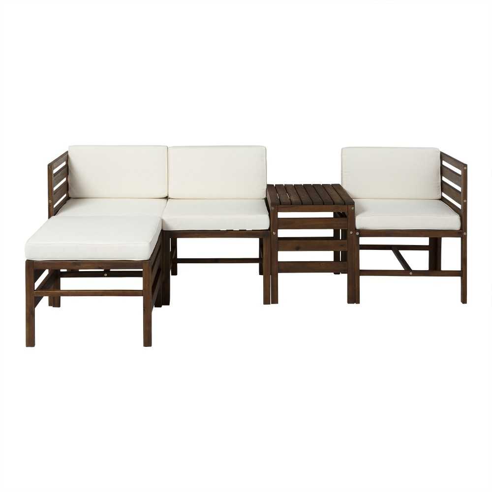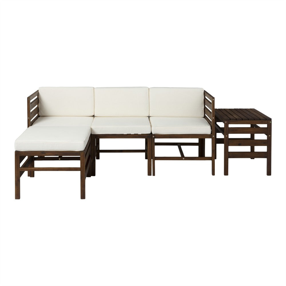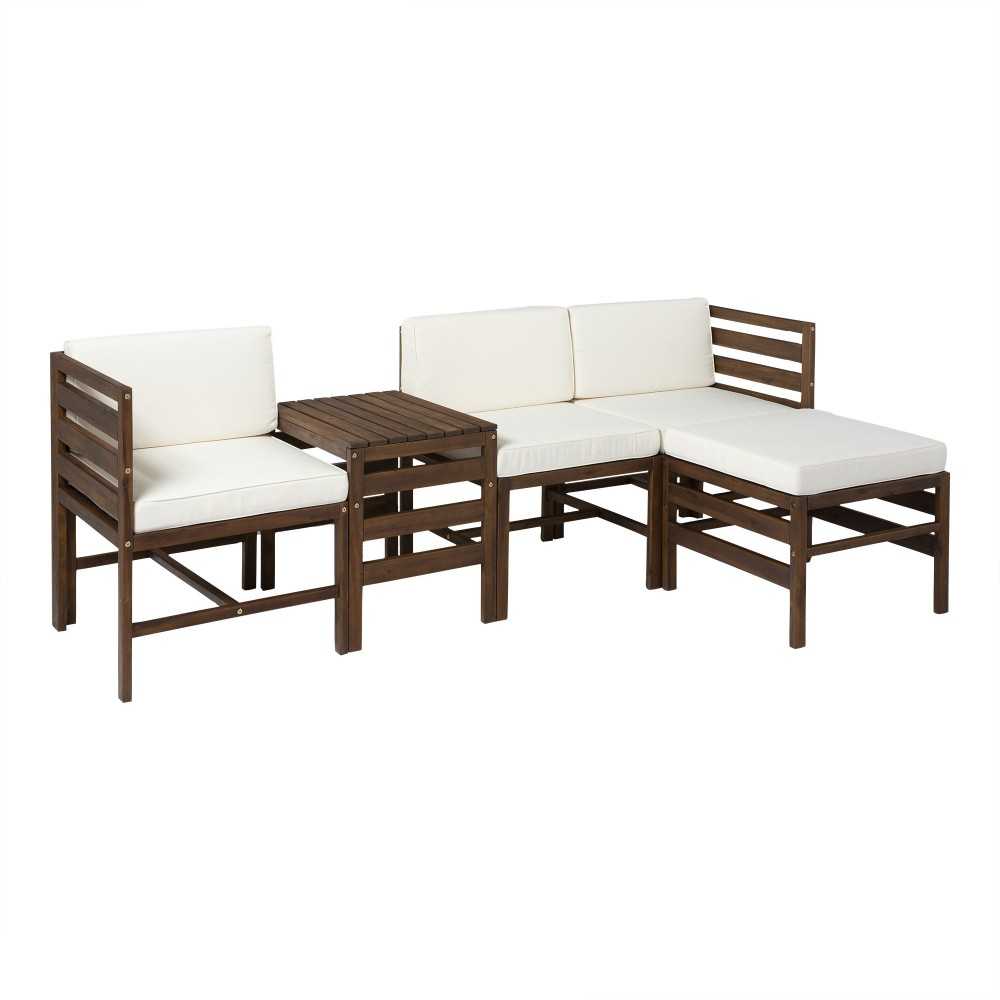 5-Piece Modular Acacia - 3 seat, Ottoman, and Side Table - Dark Brown