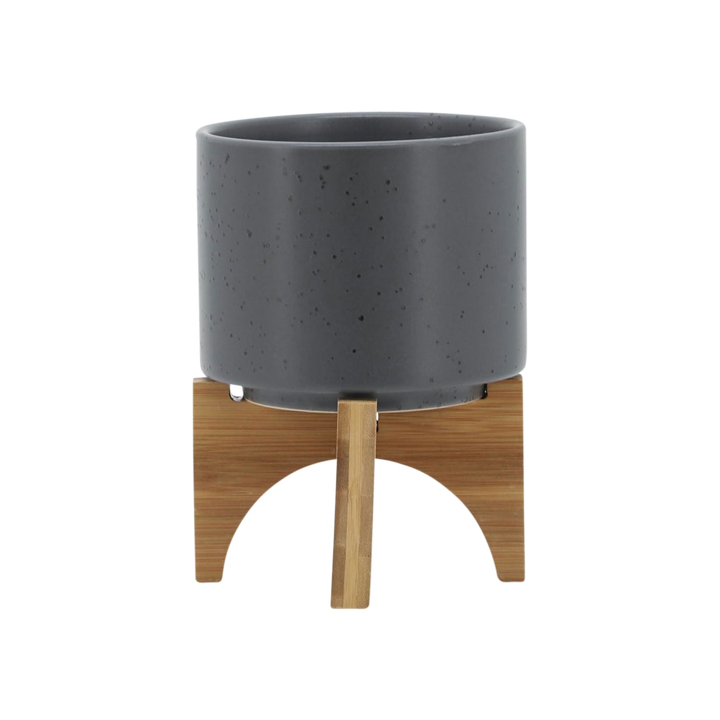 5" Planter with wood stand, Matte Gray. Beautiful Ceramic planter, black speckles on planter. Bottom of planter has a rubber wood coaster.Sagebrook Home has been formed from a love of design, a commitment to service and a dedication to quality. They create and import fashion forward items in the most popular design styles. Backed with years of experience in the textile field, They are now providing a complete Home decor story. the combination of wall decor, furniture, lighting and Home accessories are all coordinated with textiles to provide a complete Home look. Sagebrook Home is committed to providing the best Home decor and accent pieces at value prices.