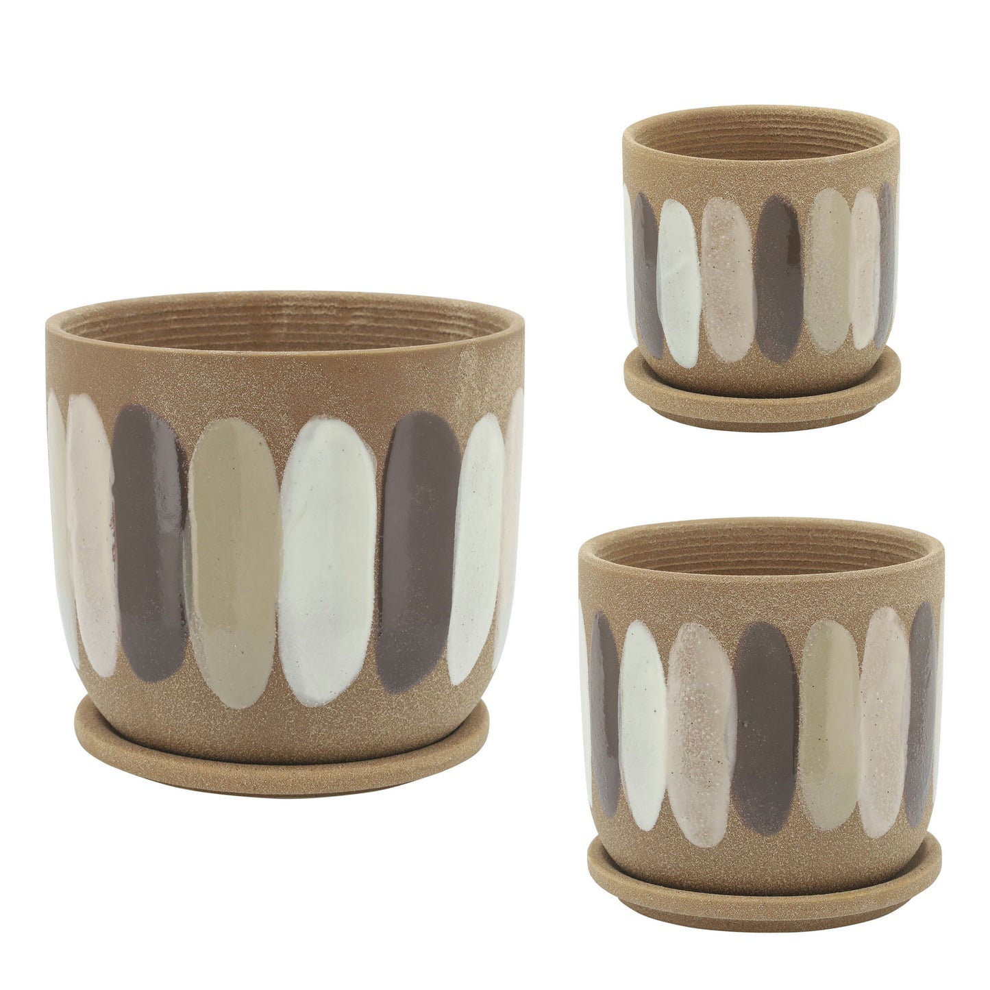 5" Stripes Planter W/ Saucer, Tan