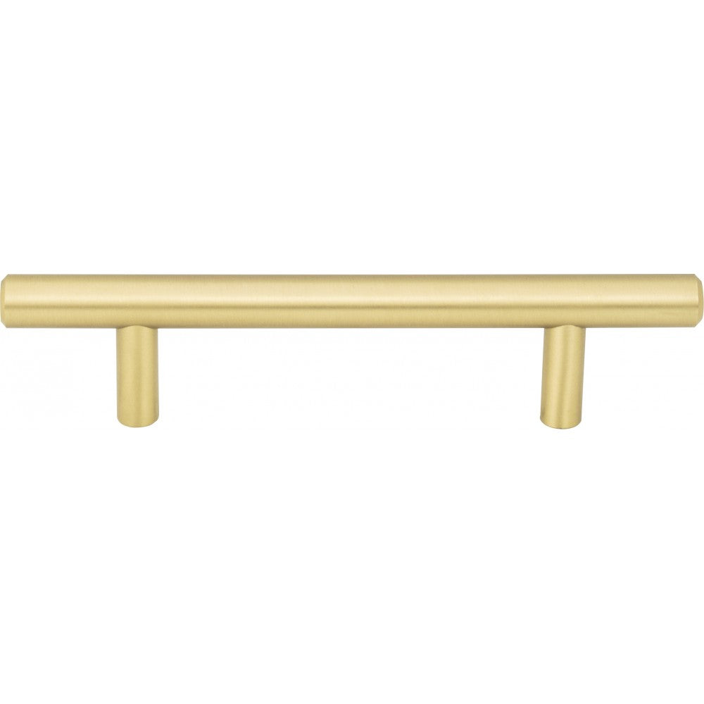 - 136 mm (5-3/8") Overall Length 7/16" Diameter Steel Cabinet Bar Pull with Beveled Ends. Holes are 3" center-to-center. Packaged with two 8-32 x 1" and two Break-away screws. Finish: Brushed Gold