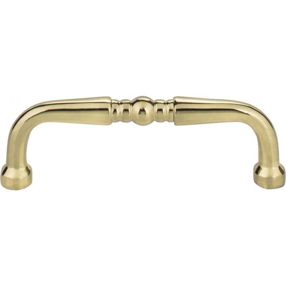 - 3-3/8" Overall Length Turned Cabinet Pull. Holes are 3" center-to-center. Packaged with two 8-32 x 1" screws. Finish: Polished Brass