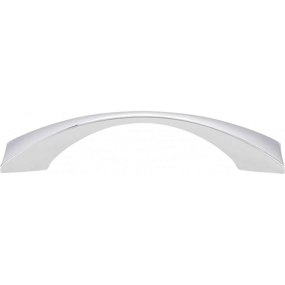 With a sleek arch that seamlessly moves into flared square feet and features a thin handle, this Polished Chrome 4-15/16" overall length pull from Glendale by Elements is the perfect accent for many cabinet styles. This accommodating Elements collection also features a coordinating concave square knob with soft curves and is available in nine fabulous finishes for various design choices. Each item is individually wrapped to protect the item from damage. Attachment hardware is included.