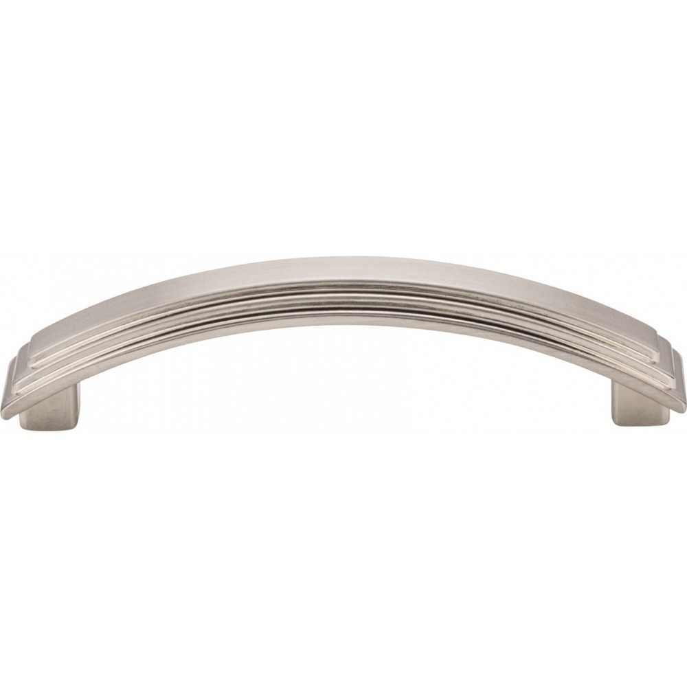 - 4-7/16" Overall Length Stepped Squared Cabinet Pull. Holes are 96 mm center-to-center. Packaged with two 8-32 x 1" and two Break-away screws. Finish: Satin Nickel