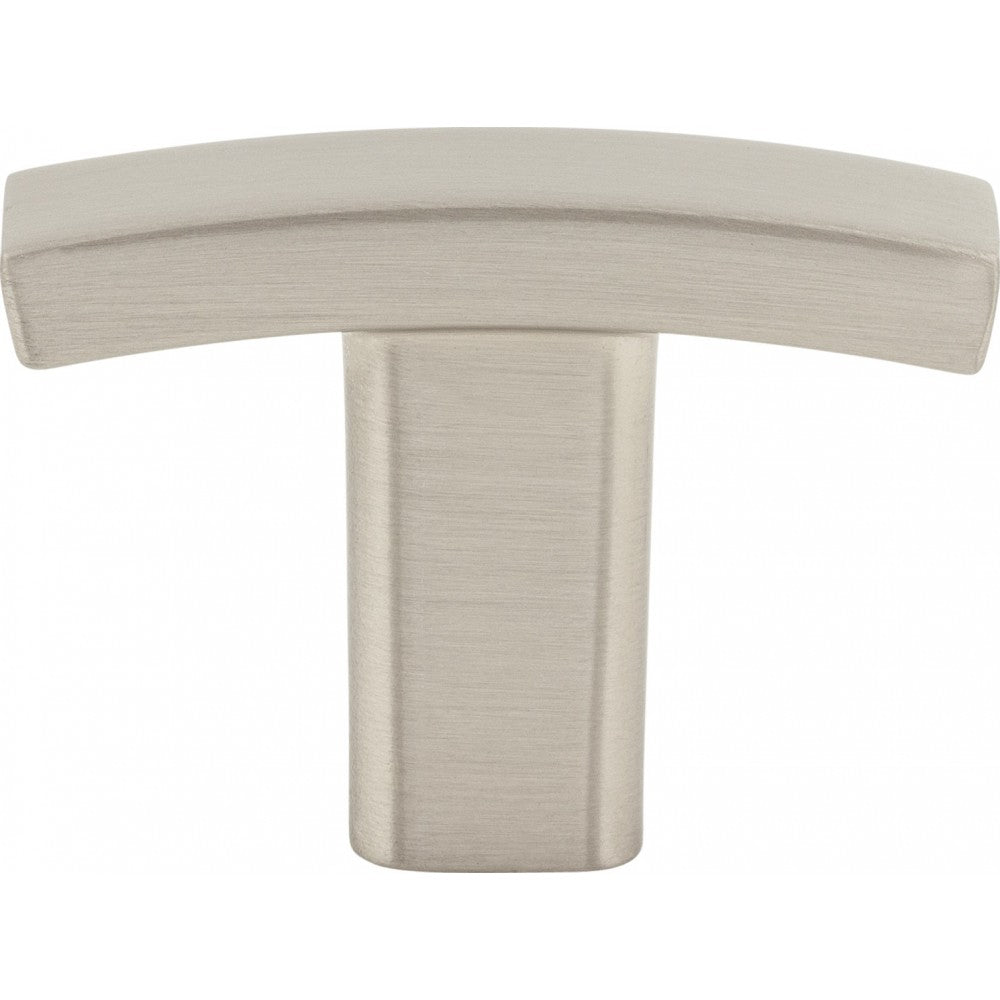 A slightly curved strap sitting atop the round edged feet of this Satin Nickel 1-1/4" overall length "T" knob from Thatcher by Elements creates a casual, easygoing vibe. With four lengths and six additional top trending finishes this collection is the perfect match for any style of cabinets. Each item is individually wrapped to protect the item from damage. Attachment hardware is included.