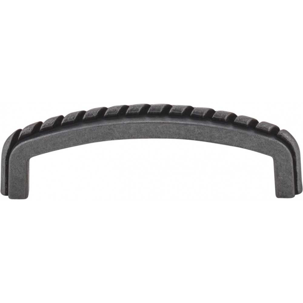 The Artesian style rope accent of this Gun Metal 3-7/16" overall length pull in the Cypress collection by Elements adds sophisticated appeal to your home with craftsmanlike detail. With a coordinating rope detailed knob and additional pull length, this collection is the perfect accent to any cabinet and is available in three other finishes. Each item is individually wrapped to protect the item from damage. Attachment hardware is included.