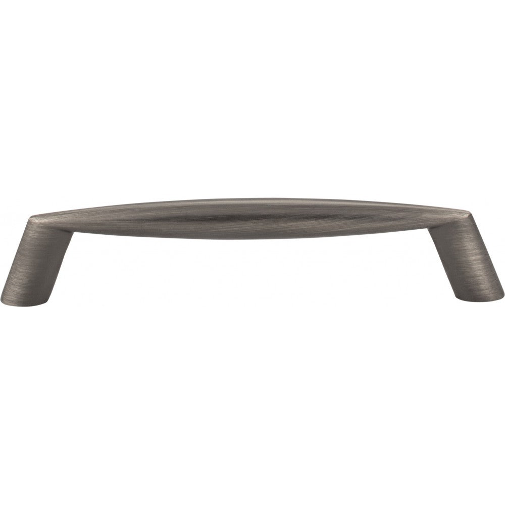 Bold and sleek, with handles that narrow to tapered feet, this Brushed Pewter 5-3/4" overall length pull from Zachary makes an alluring addition to any contemporary cabinet. This progressive Elements collection includes a smooth domed knob, three additional lengths of pulls to choose from in five finishes. Each item is individually wrapped to protect the item from damage. Attachment hardware is included.