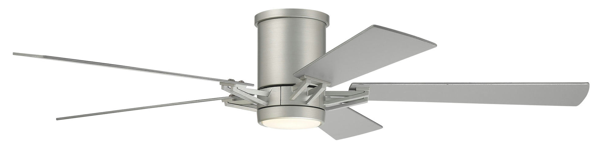 Ideal for low ceilings, the Craftmade 52" Wyatt flush mount ceiling fan features an energy-saving 6-speed, reversible DC motor housed in a clean cylinder body with architectural blade arms supporting 5 reversible custom blades, an integrated 18W dimmable LED light with optional lens cover, and is easily controlled with either the included remote control or the integrated WIFI featuring breeze and timer functions compatible for use with most smart home devices, smart phones and systems.
