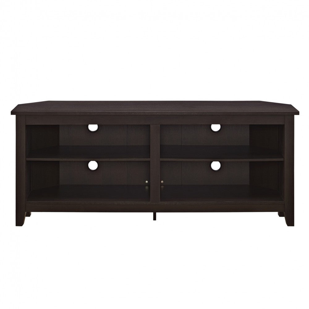 Having a universally flattering simple design, this corner media console pairs beautifully with any decor style of a home. Position in any corner of your living room to hold anything from your home decor to your electronics, as this entertainment center is meant to fit your storage needs, while also looking stylish. Made of durable, warp-resistant MDF, this transitional style TV stand can accommodate most flat-panel TVs up to 65 inches and includes a cable management system to keep your living room tidy.