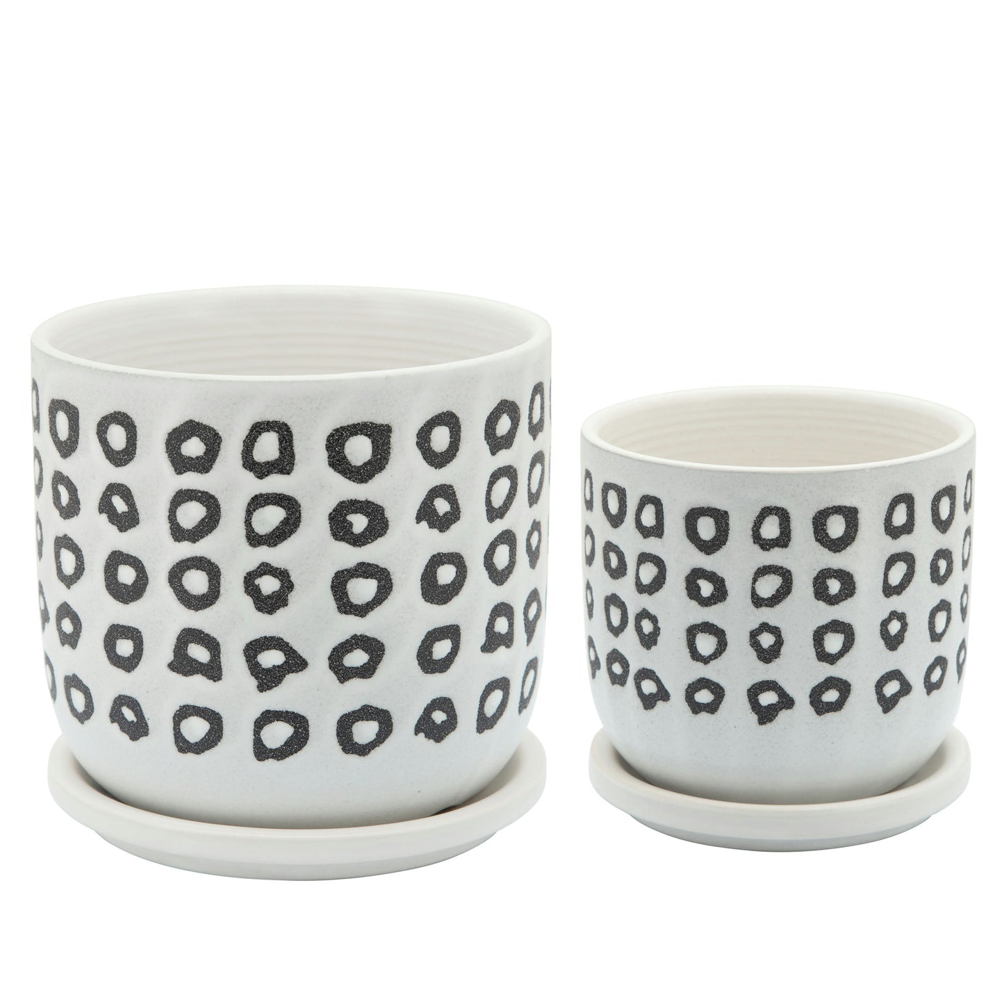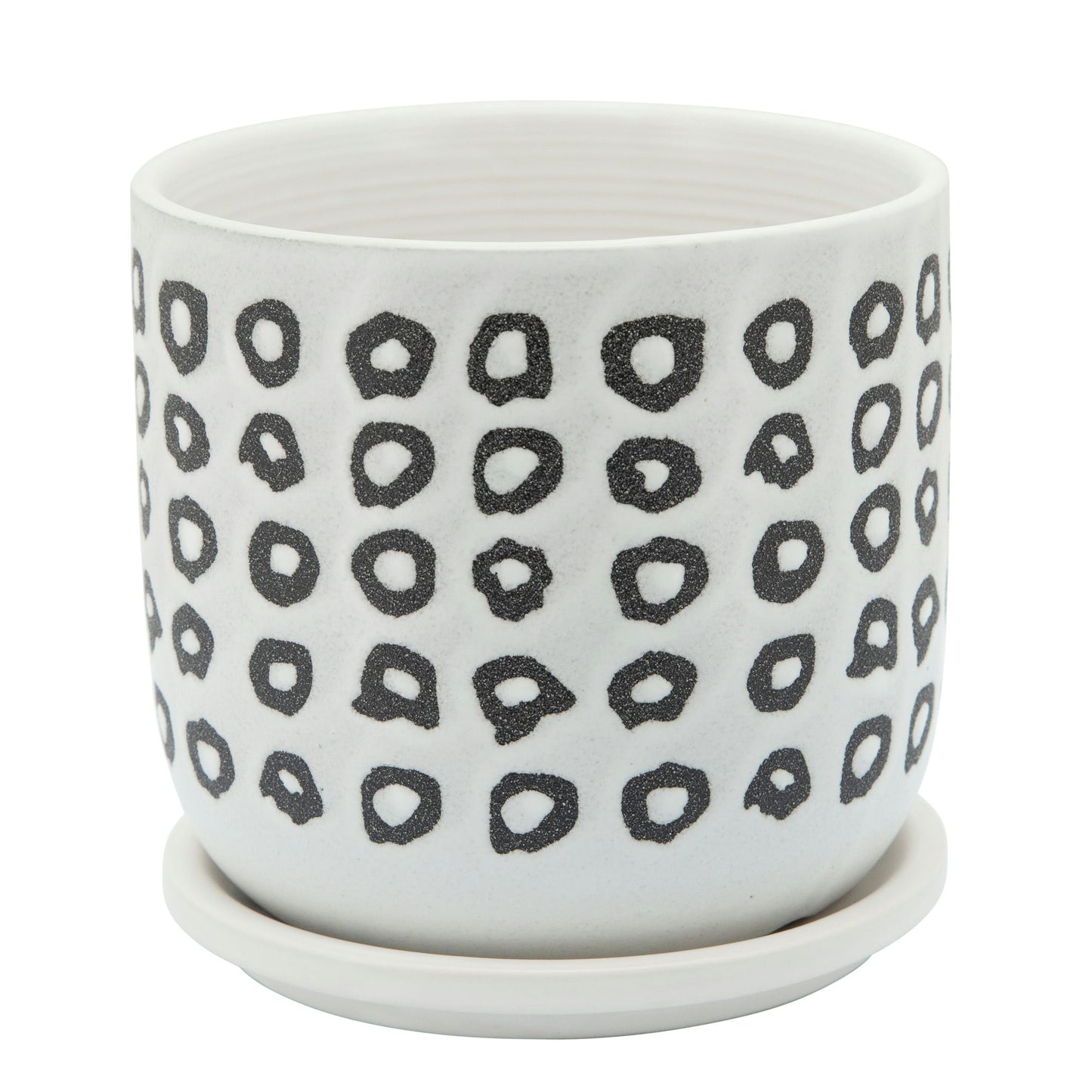 6" Aztec Planter with Saucer in Black. This is sure to bring a modern feel to your home. This is made of ceramic with a Aztec pattern, crème base with a black pattern. This planter does have drainage holes. This is sure to be a great addition to your planter collection.