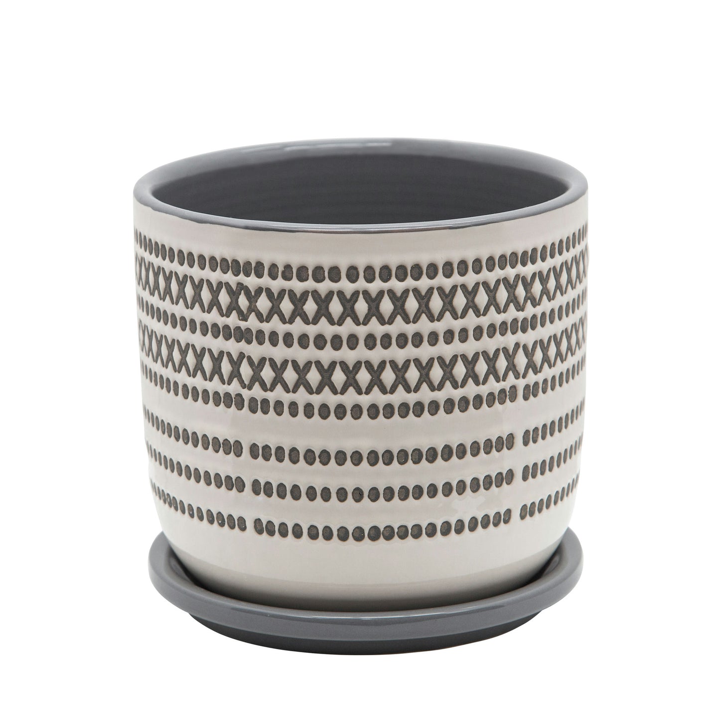 6" Aztec planter with saucer, gray. Made of Ceramic with a Aztec pattern, Crème base with gray pattern. The Aztec pattern creates more depth and dimension. Comes with draining holes and attached water-catching saucers.Sagebrook Home has been formed from a love of design, a commitment to service and a dedication to quality. They create and import fashion forward items in the most popular design styles. Backed with years of experience in the textile field, They are now providing a complete Home decor story. the combination of wall decor, furniture, lighting and Home accessories are all coordinated with textiles to provide a complete Home look. Sagebrook Home is committed to providing the best Home decor and accent pieces at value prices.