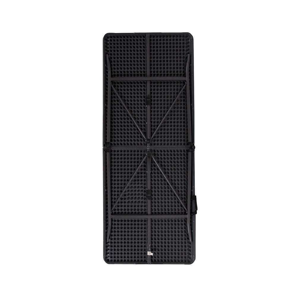 Take the stress out of hosting and say hello to the perfect solution for your seating crisis! This bi-fold plastic folding table is a great option when you need a temporary dining surface or an everyday workstation in your home or office. This versatile folding table can be dressed up or used as is with its dark colored top during holiday events, parties and arts and craft activities. Place multiple tables side by side or in rows to accommodate large party events. The waterproof, impact and stain resistant top have a 220 pound static load capacity and is commercial rated for use as a training table, in banquet halls and at trade shows. The thick, dark gray tabletop is 6' long, 1.5" thick, and will seat up to 8 adults. Attractive gray powder coated legs lock securely in place while in use and non-marring floor caps protect your floor by sliding smoothly when you need to move the table. This durable, easy to clean table folds in half, making it easy to store and transport, using the convenient carrying handle attached on the side. The 30"W x 72"L Bi-Fold Dark Gray Plastic Folding Table with Carrying Handle is perfect for in-home events or on the deck or patio while entertaining during a barbeque. Designed for both indoor and outdoor use, store table indoors and protect the frame from extreme moisture. Rectangular folding tables offer the best solution for your home or business. [DAD-LF-183Z-DG-GG]