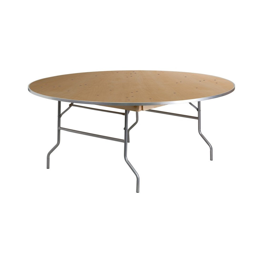 6-Foot Round HEAVY DUTY Birchwood Folding Banquet Table with METAL Edges