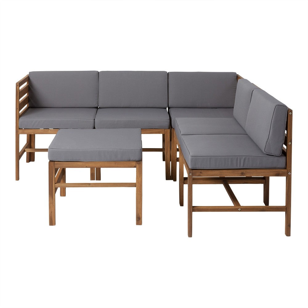 6-Piece Modular Acacia - 5 seat and Ottoman - Brown