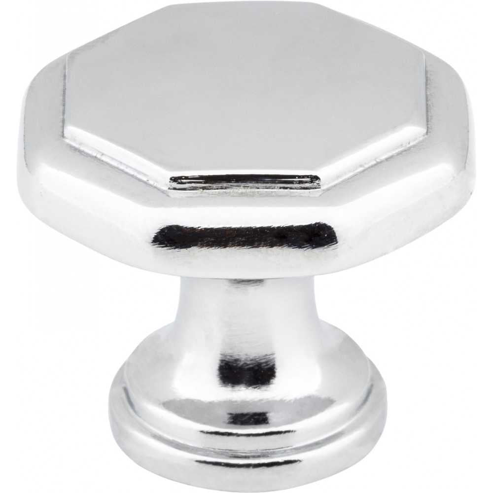 The beautifully geometric design of this flat top Polished Chrome 1-3/16" diameter knob in the Drake collection by Elements adds a touch of luxury to any room. With a coordinating 1-3/16" faceted geometric knob, and two pull lengths that also showcase a geometric design, this collection is available in four other stylish finishes. Each item is individually wrapped to protect the item from damage. Attachment hardware is included.