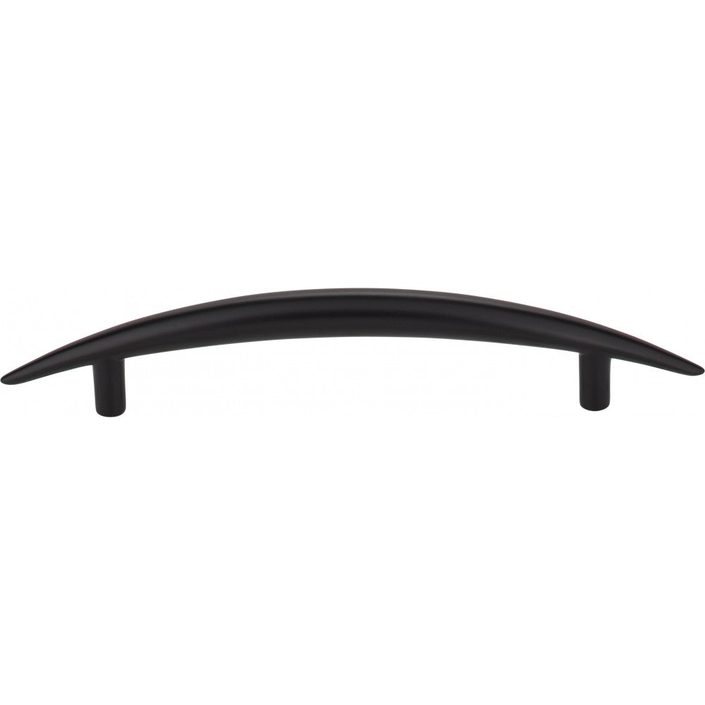 - 7-3/8" Overall Length Curved Cabinet Pull. Holes are128 mm center-to-center. Packaged with two M4 screws. Finish: Matte Black