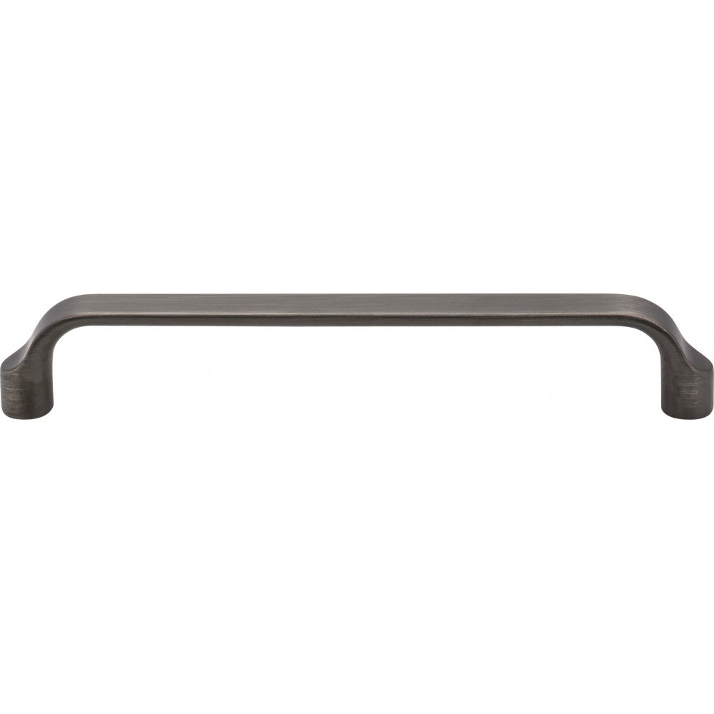 Brenton from Elements features a understated bar pull that doesn't skimp on character. The rounded feet of this Brushed Pewter 6-13/16" overall length pull curve inward towards a flat squared handle, taking the typical bar pull from ordinary to extraordinary. A matching button knob echoes the pulls geometric characteristics. Available in six other finishes and three additional pull sizes. Each item is individually wrapped to protect the item from damage. Attachment hardware is included.
