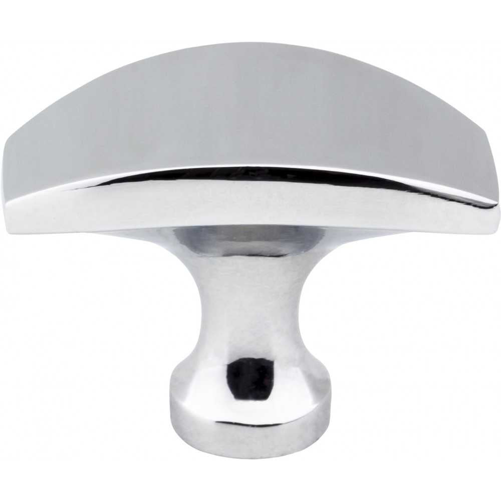 The reassuring curve of Cosgrove's Polished Chrome 1-1/2" overall length "T" knob with rounded foot creates the perfect blend of traditional and contemporary. This collection from Elements is available in three other finishes with four coordinating pull lengths too choose from. Each item is individually wrapped to protect the item from damage. Attachment hardware is included.