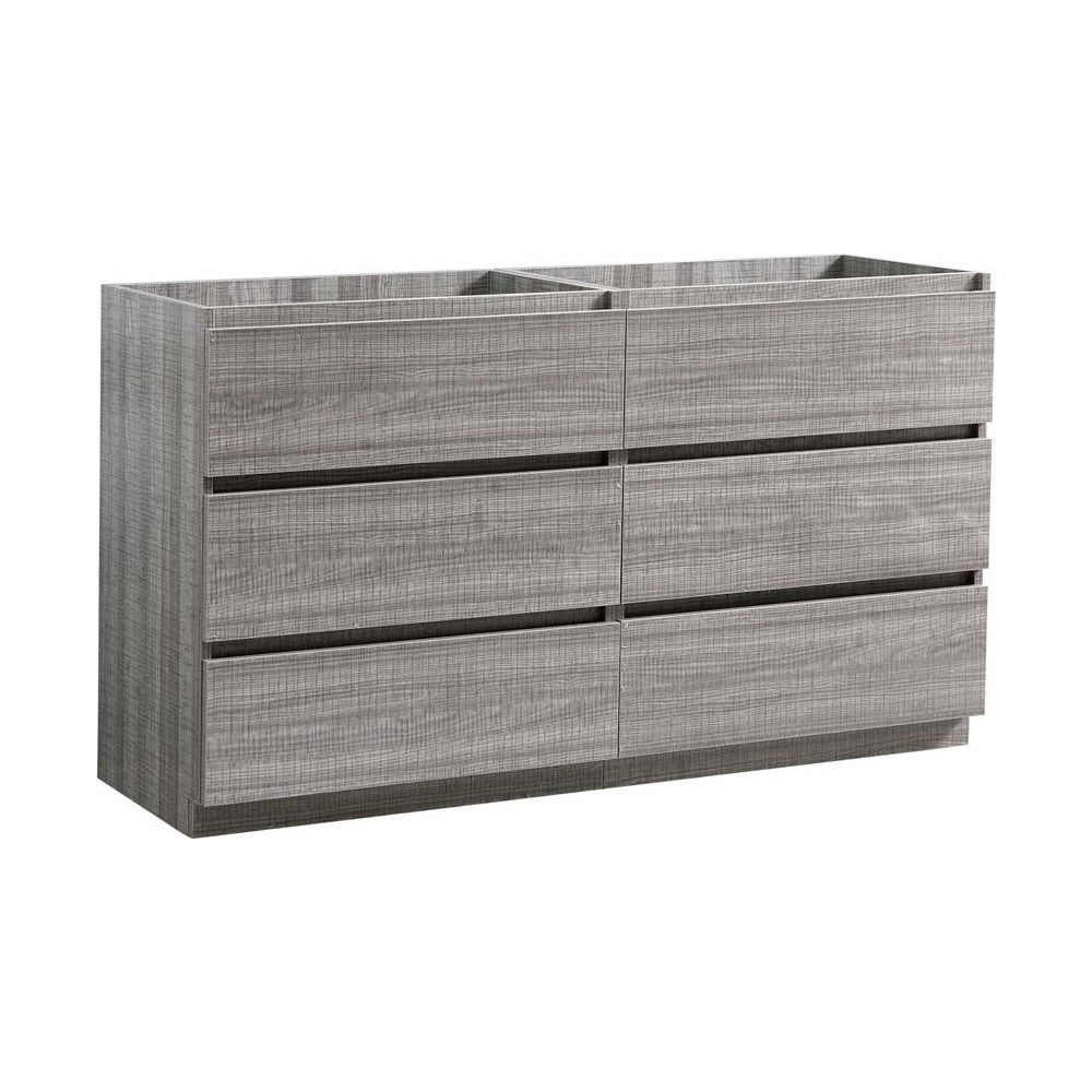 With its chic Ash Gray finish, the Fresca Lazzaro Freestanding Modern Double Sink Bathroom Cabinet is the ideal combination of style and function. Six spacious soft-closing wood drawers offer wonderful storage space, perfect for keeping all of your daily essentials out of sight and the family organized. The drawers feature push-release hardware, offering a streamlined front that beautifully complements the minimalist design. This modern cabinet will enhance any decor and is available in multiple sizes and finishes. It includes installation hardware