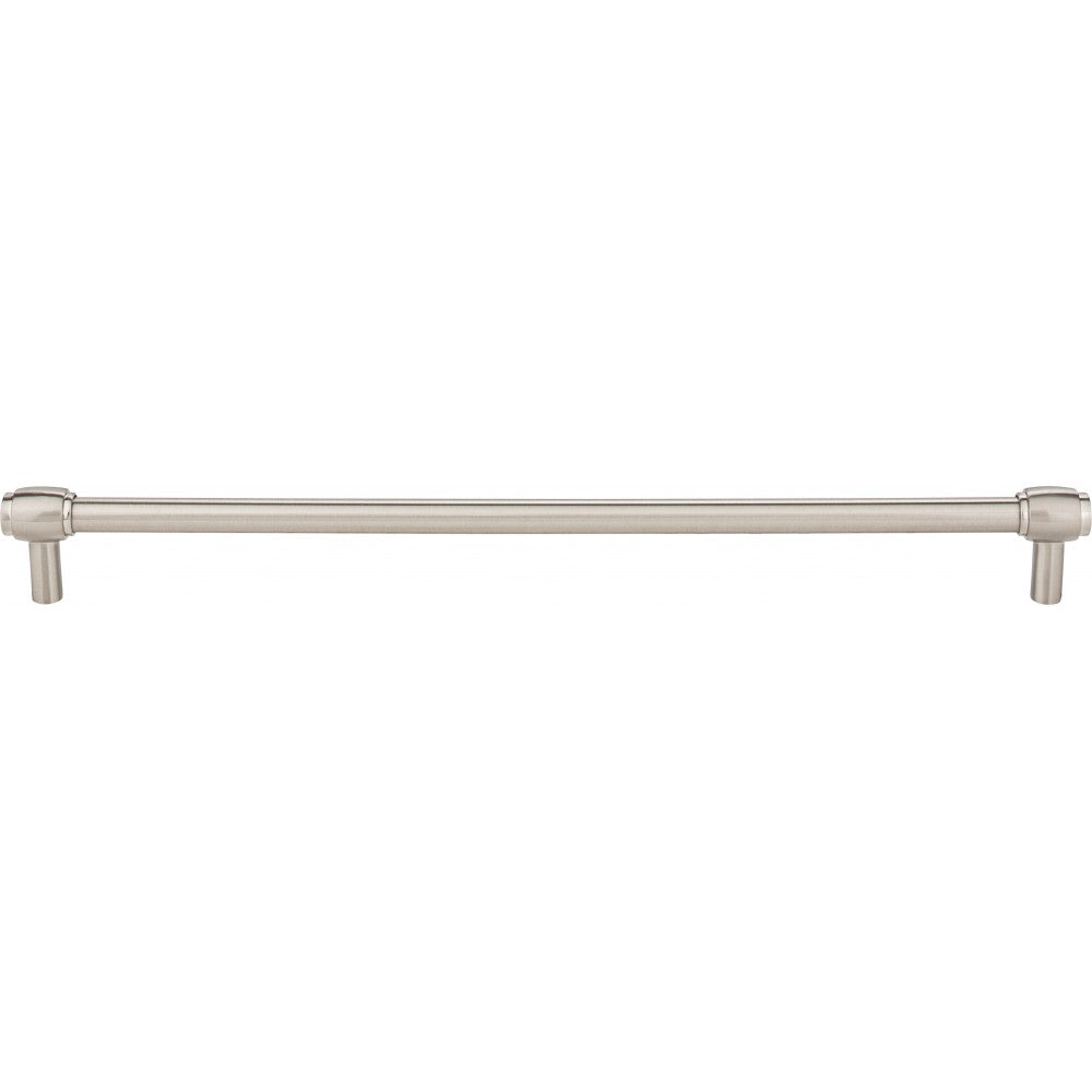 - 12-15/16" Overall Length Cabinet Pull. Holes are 305 mm center-to-center. Packaged with two 8-32 x 1" and two Break-away screws. Finish: Satin Nickel