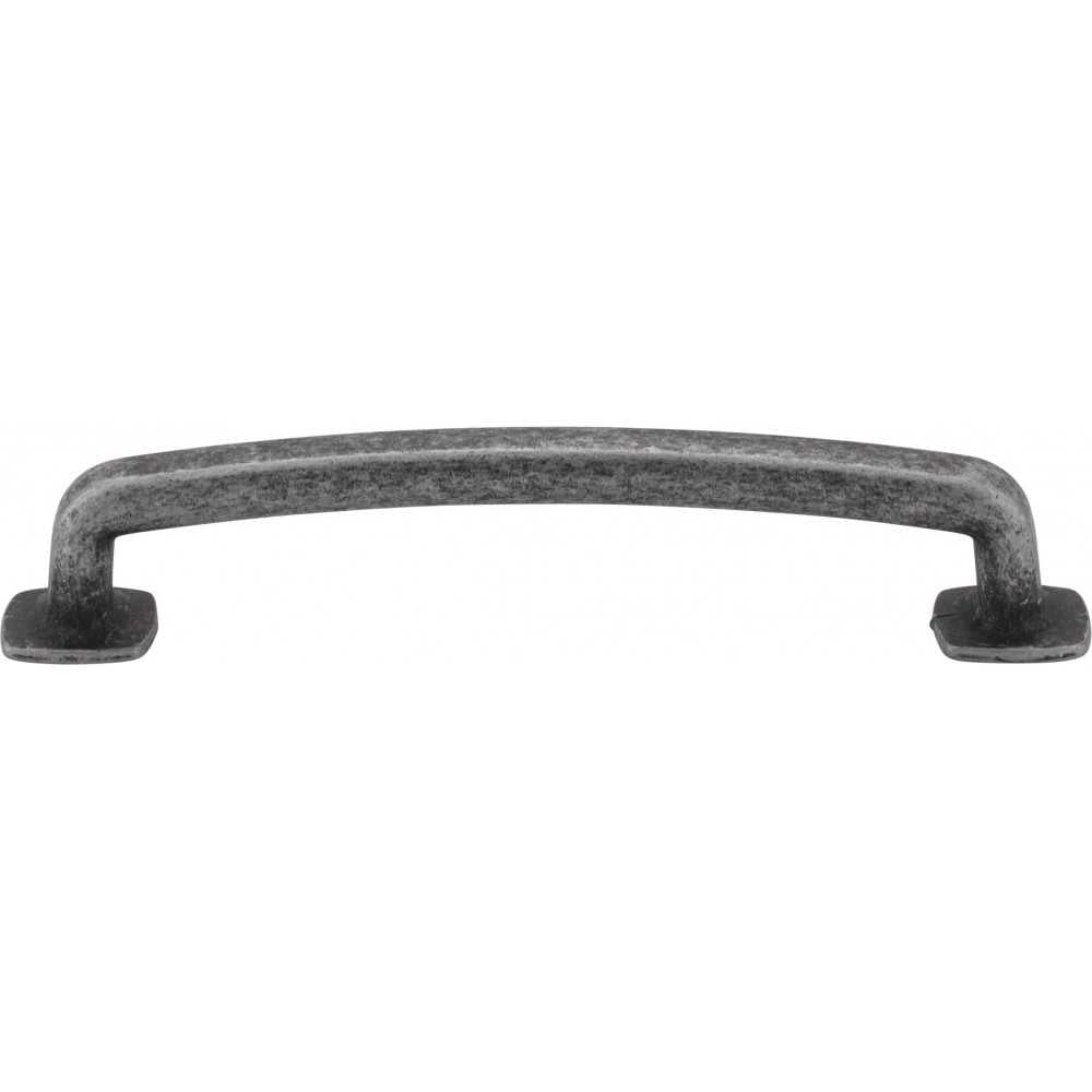 - 5-7/8" Overall Length Forged Look Flat Bottom Pull 128 mm center-to-center. Packaged with two 8-32 x 1" and two Break-away screws. Finish: Distressed Antique Silver