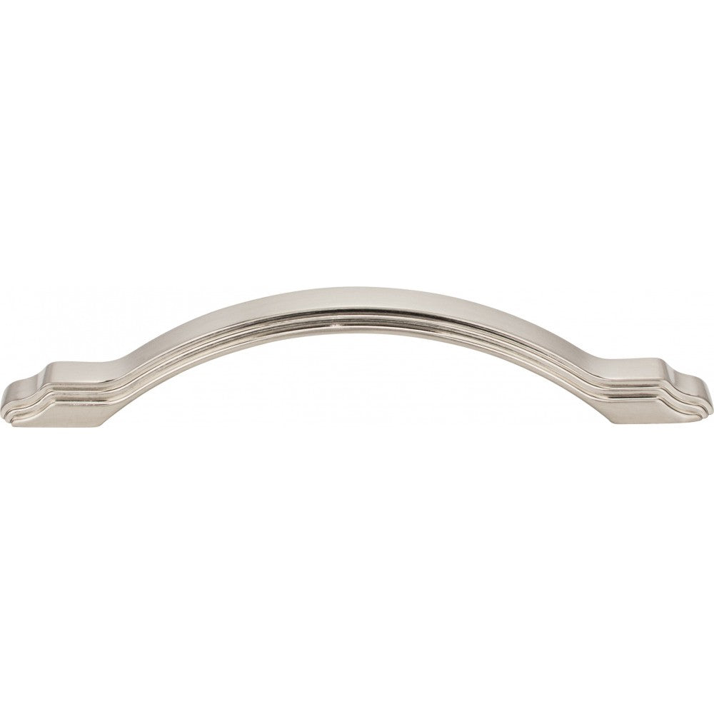 - 6-3/8" Overall Length Cabinet Pull. Holes are 128 mm center-to-center. Packaged with two 8-32 x 1" and two Break-away screws. Finish: Satin Nickel
