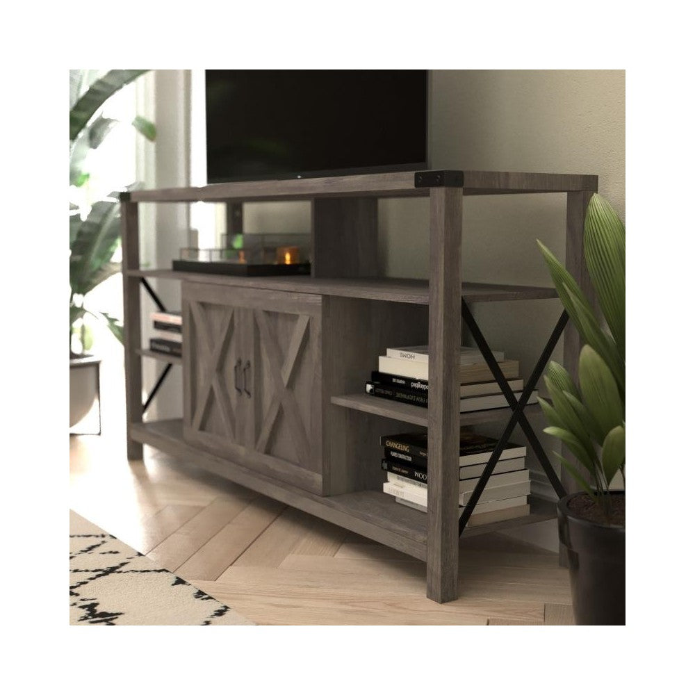 Storage with style describes this extra tall 60 inch TV stand that provides display surfaces for electronics and treasured keepsakes and storage for remote controls, throw blankets, or kids toys. This modern farmhouse TV stand for up to 60" TV's boasts fixed open storage shelves and a storage cabinet with an adjustable shelf and wire management holes. Comprised of durable engineered wood in a beautiful wood grain finish, the shelf and drawers hold up to 25 lbs. static weight while the unit holds up to 100 lbs. static weight. Assembly takes less than an hour and a damp cloth is all that is needed to keep your new entertainment center clean. [ZG-025-GY-GG]
