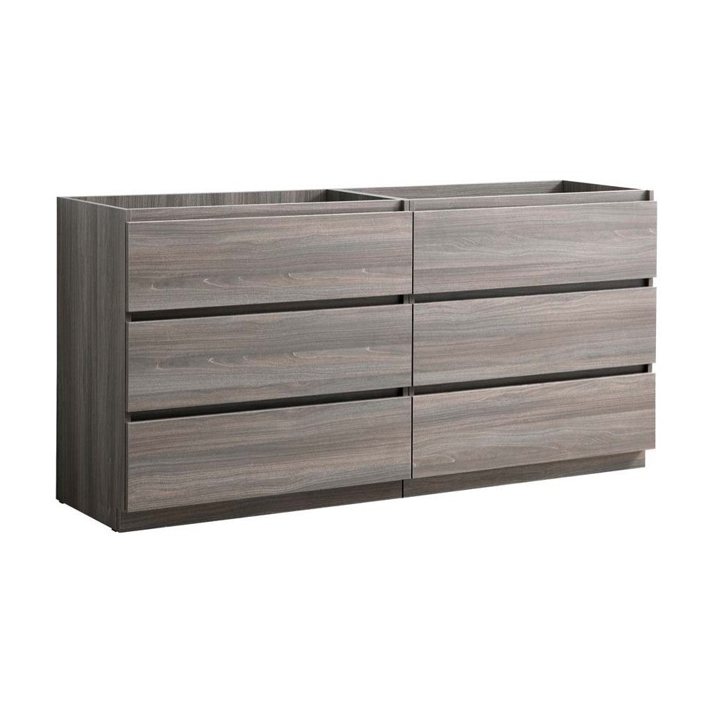 With its chic Gray Wood finish, the Fresca Lazzaro Freestanding Modern Double Sink Bathroom Cabinet is the ideal combination of style and function. Six spacious soft-closing wood drawers offer wonderful storage space, perfect for keeping all of your daily essentials out of sight and the family organized. The drawers feature push-release hardware, offering a streamlined front that beautifully complements the minimalist design. This modern cabinet will enhance any decor and is available in multiple sizes and finishes. It includes installation hardware