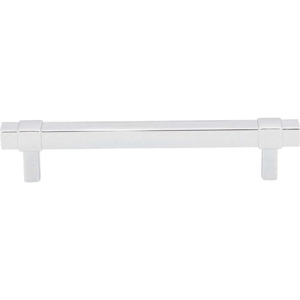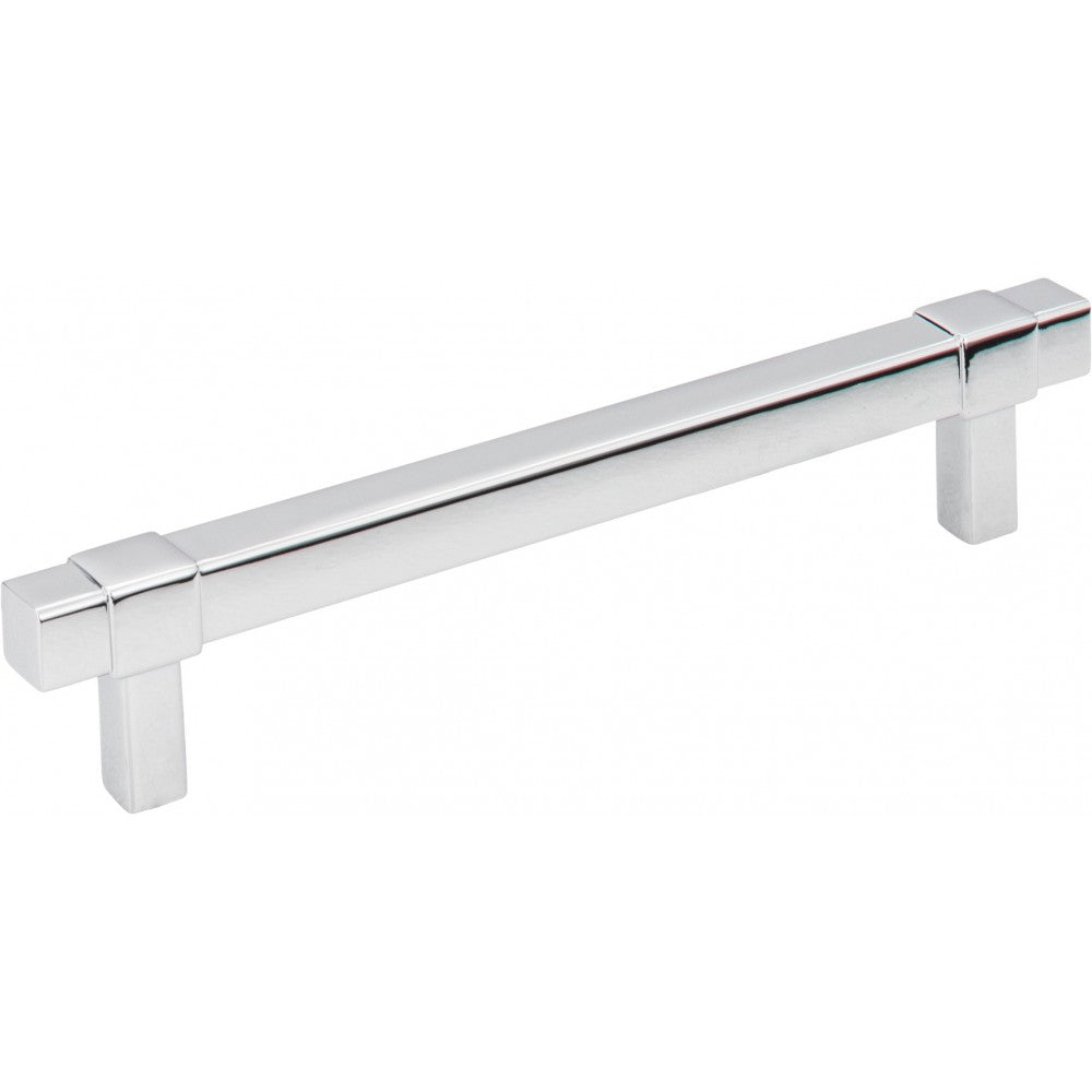- 6-5/16" Overall Length Square Bar Pull. Holes are 128 mm center-to-center. Packaged with two 8-32 x 1" and two Break-away screws. Finish: Polished Chrome