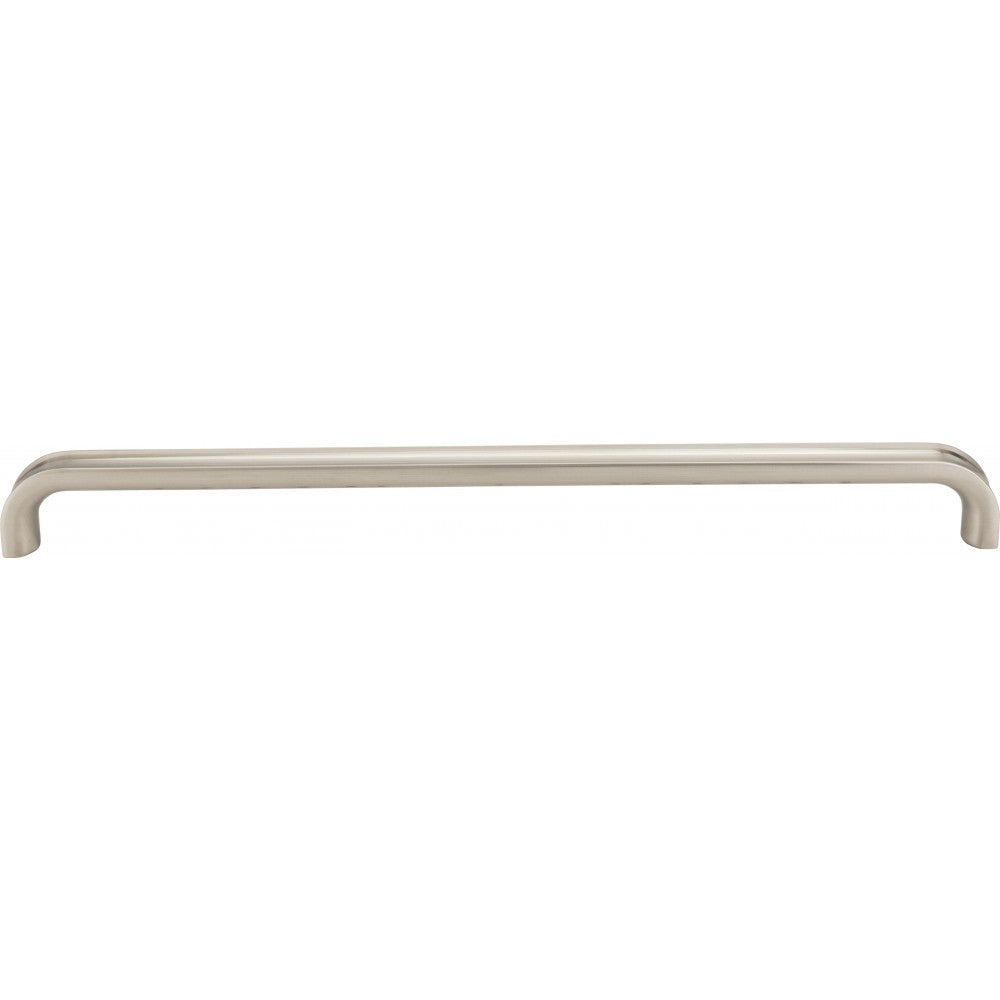 - 12-9/16" Overall Length Cabinet Pull. Holes are 305 mm center-to-center. Packaged with two 8-32 x 1" and two Break-away screws. Finish: Satin Nickel