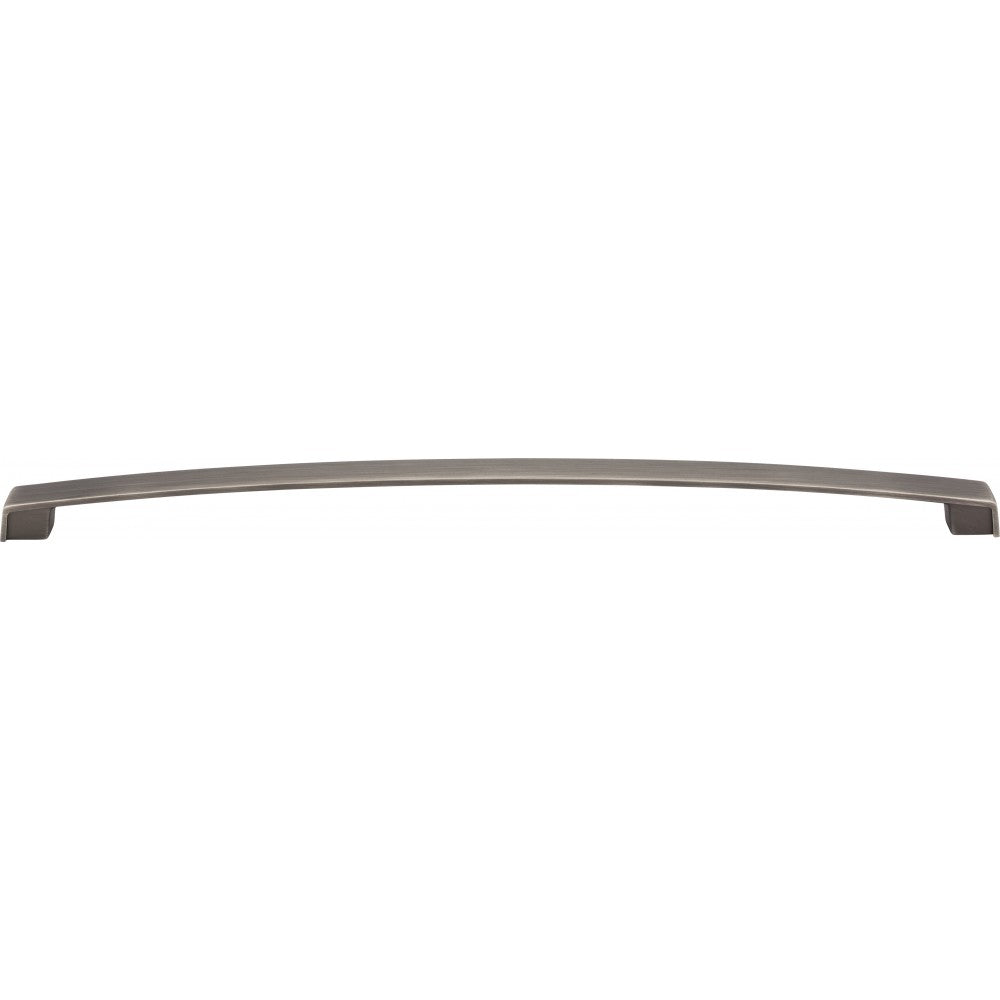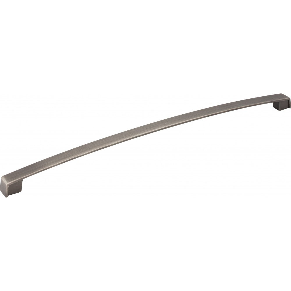 Subtle curves, a broad profile, and square feet make Merrick's simple strap pull anything but boring. This 13-1/16" overall length Brushed Pewter pull is also available in four other standard pull lengths. Fit the pull length to the cabinets for more contemporary styling. This Jeffrey Alexander pull has six different finish options making it a comfortable and popular choice for various cabinet styles. Each item is individually wrapped to protect the item from damage. Attachment hardware is included.