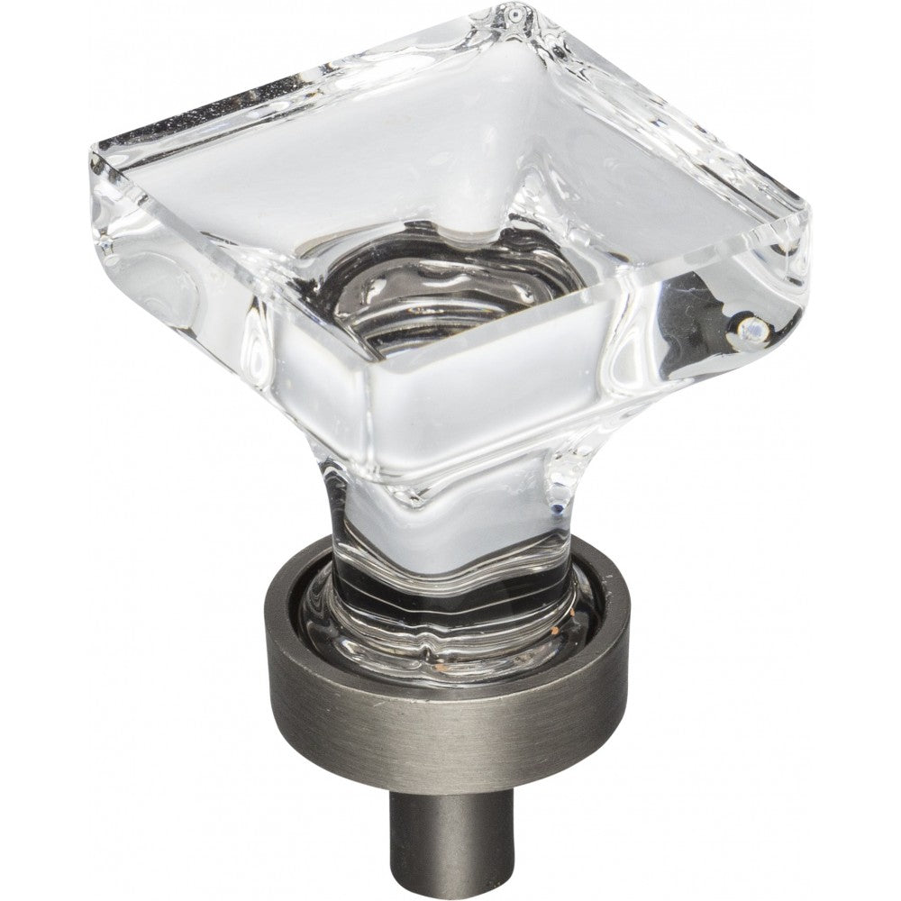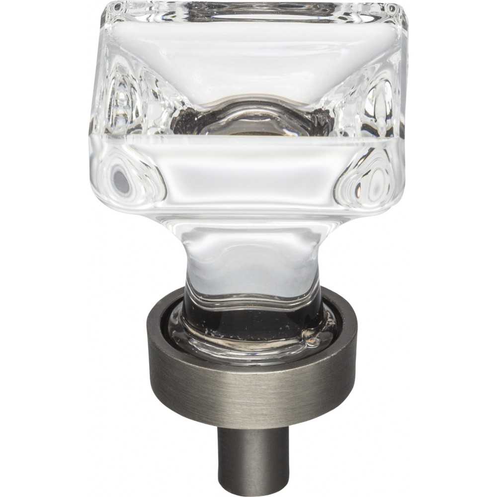 - 1" Overall Length Glass Square Cabinet Knob. Packaged with one 8-32 x 9/16" and 1-3/4" Break-away screw. Finish: Brushed Pewter