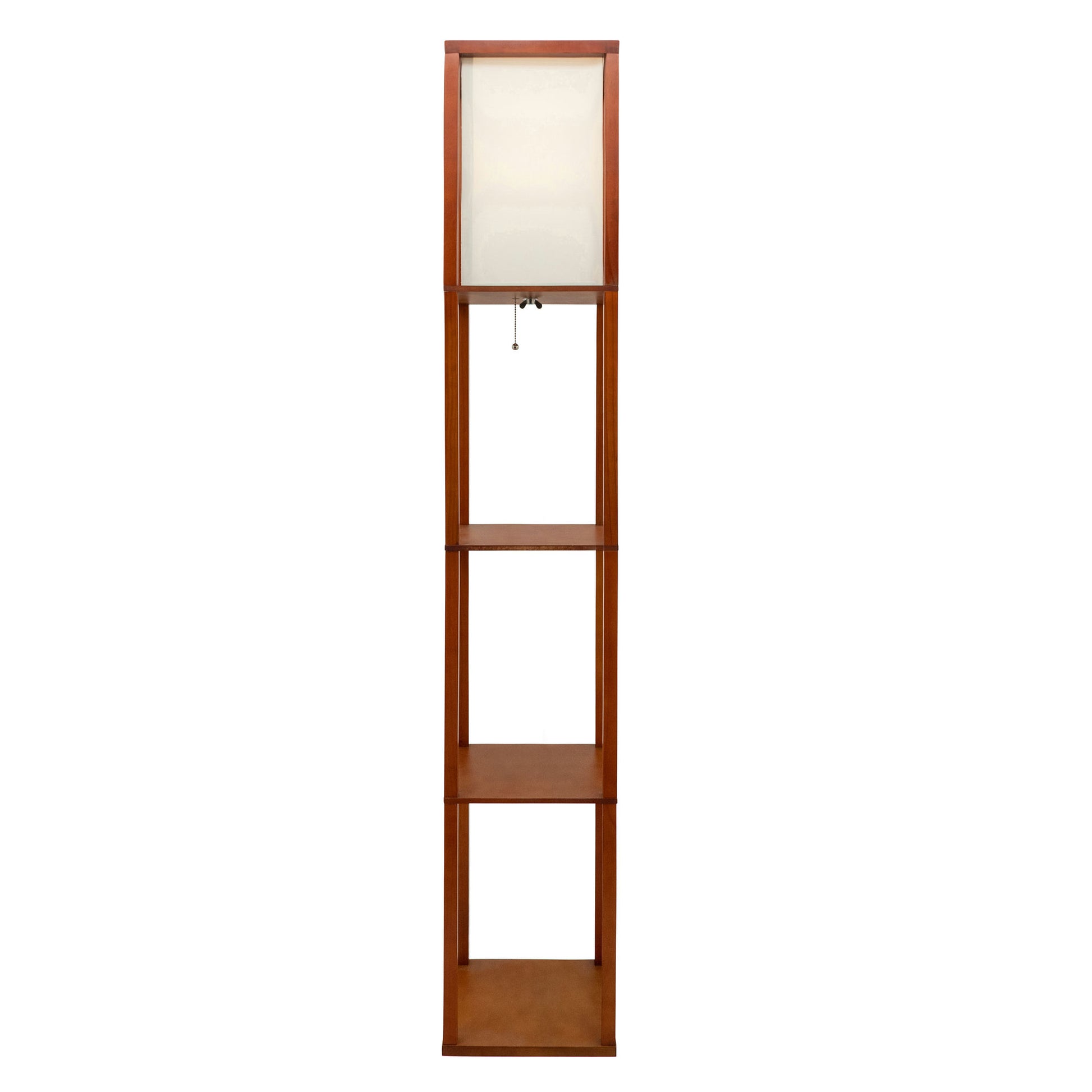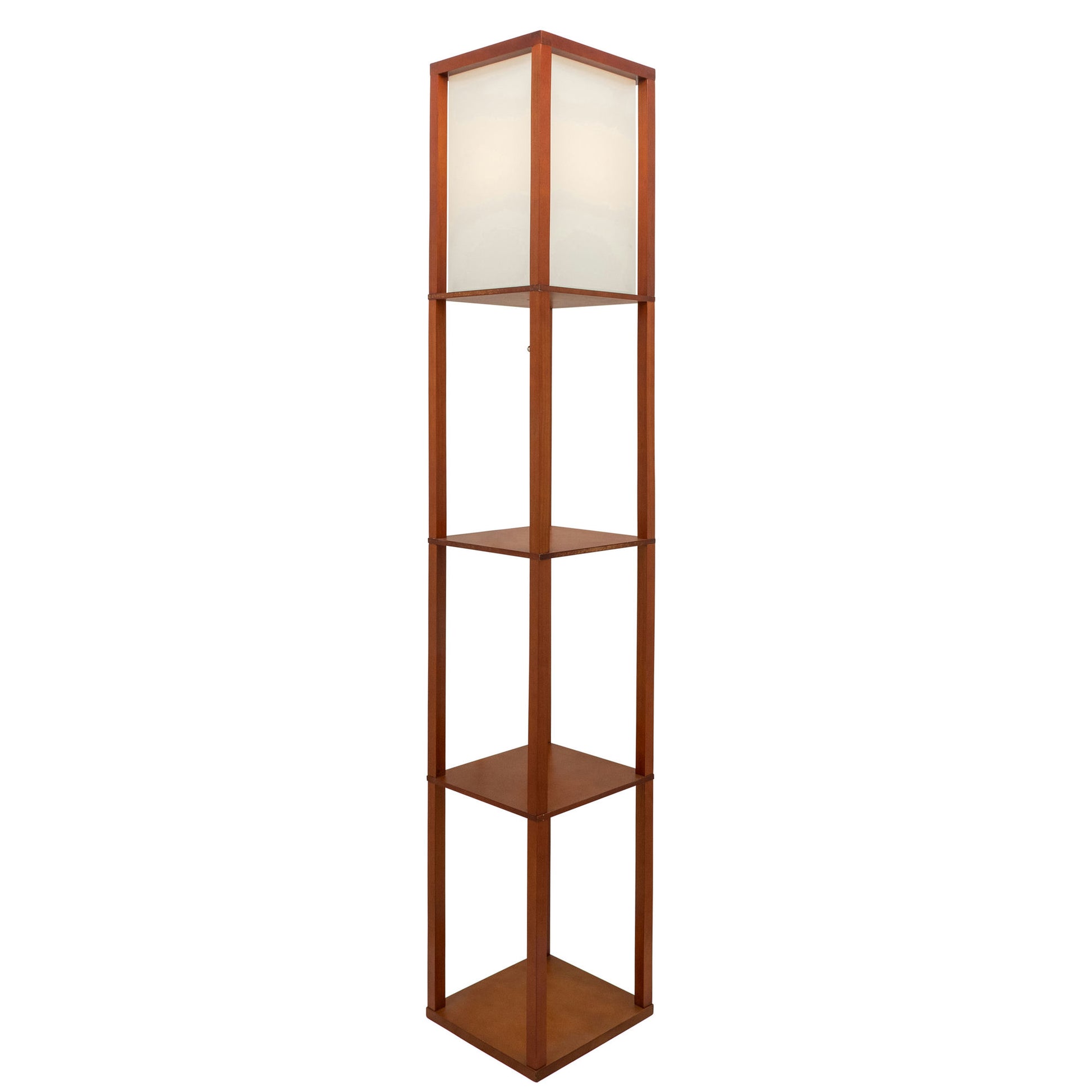 Bring a modern organized touch to your living room or studio with our 62" etagère floor lamp. Featuring a brown corner shelf body shape to add simplicity to your home interior. A very homey way to bring an accent glow to any part of your home. Base Material:Wood;Shade size:8.6 x 8.6 x 14";Shape:Square;Color:White;Material:TC;Switch:Pull Switch;Cord color:Black;Length:120;Number of lights:1;Max Wattage:60W;Bulb Base:E26 Type A;Max Voltage:110;Light Direction:Ambient