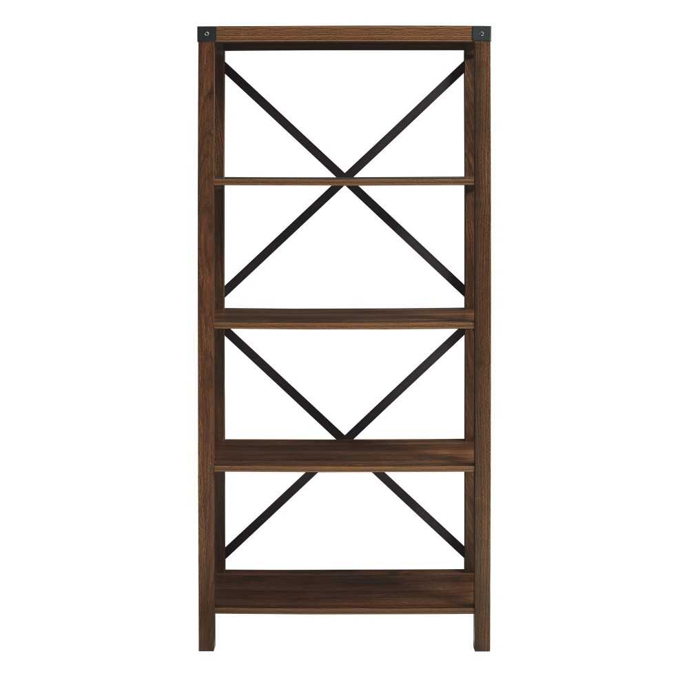 64" Farmhouse Metal X Bookshelf - Dark Walnut
