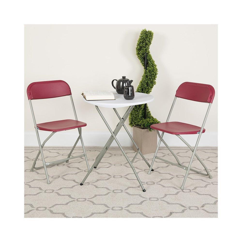 Celebrate the holidays and social gatherings without writing "bring your own chair" on the invite. The 650 lb. Capacity Premium Red Plastic Folding Chair is a convenient option for weddings, school functions, barbecues, game night, and catering events. Stay comfortable during social events with the gentle contour shaped seat and back. This portable folding chair is popular in the event rental industry due to its lightweight and incredible strength to hold up to 650 pounds of static weight. Additional advantages of our plastic folding chairs include: - Ready-to-use, no assembly required - - Stackable storage, chairs stack on top of one another without shifting - - Drainage holes prevent spills and rainwater from pooling - - Textured seat adds additional seating security - - Non-marring floor caps protect hard surfaced flooring - Foldable chairs provide a stress-free on-demand seating solution from group therapy sessions to indoor and outdoor corporate events. These low-maintenance party event chairs wipe down easily after luncheons. Make a smart investment by purchasing multiple plastic folding chairs for your rental business, waiting room or for the next time your company throws an Employee Appreciation Day. [LE-L-3-RED-GG]