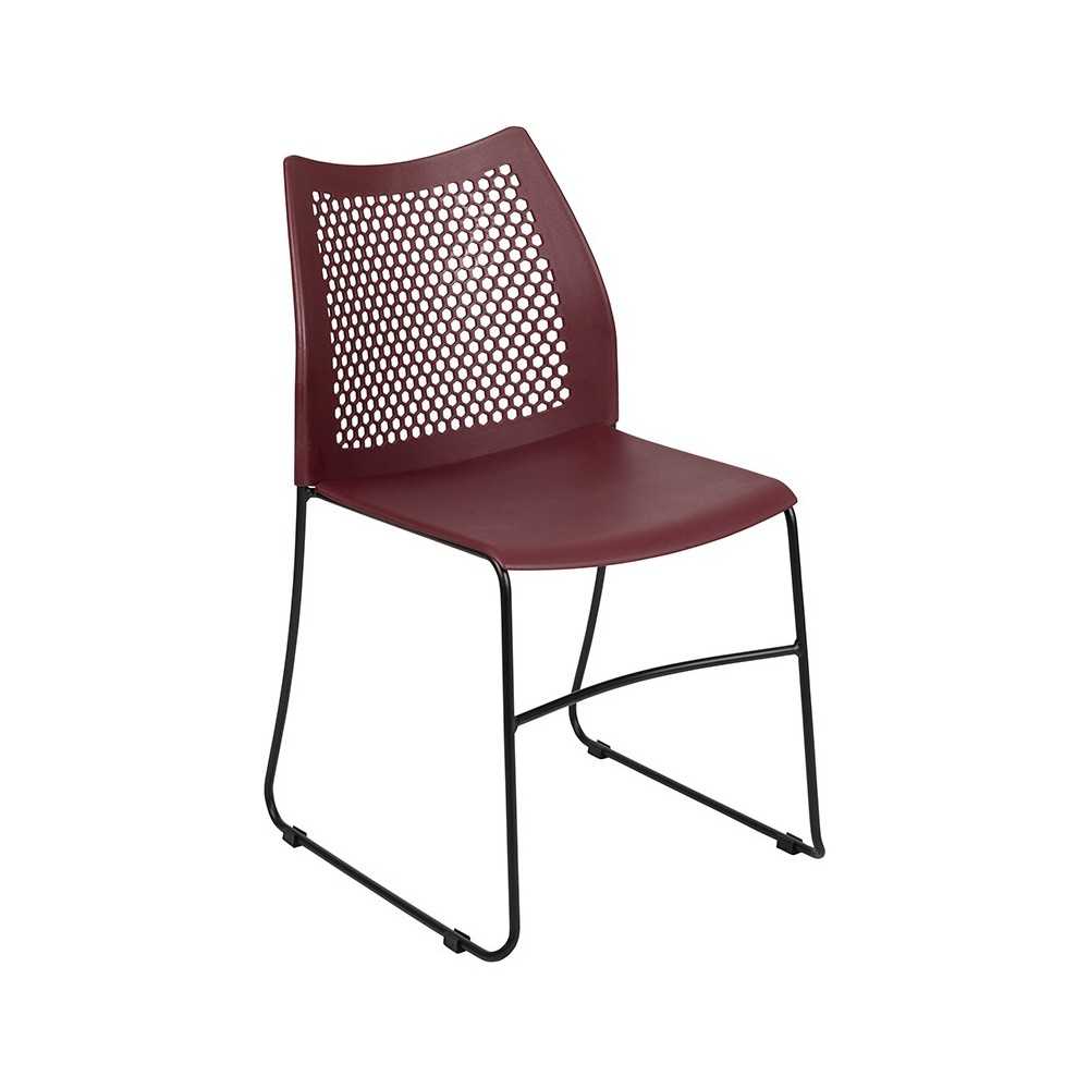661 lb. Capacity Burgundy Stack Chair with Air-Vent Back and Black Powder Coated Sled Base